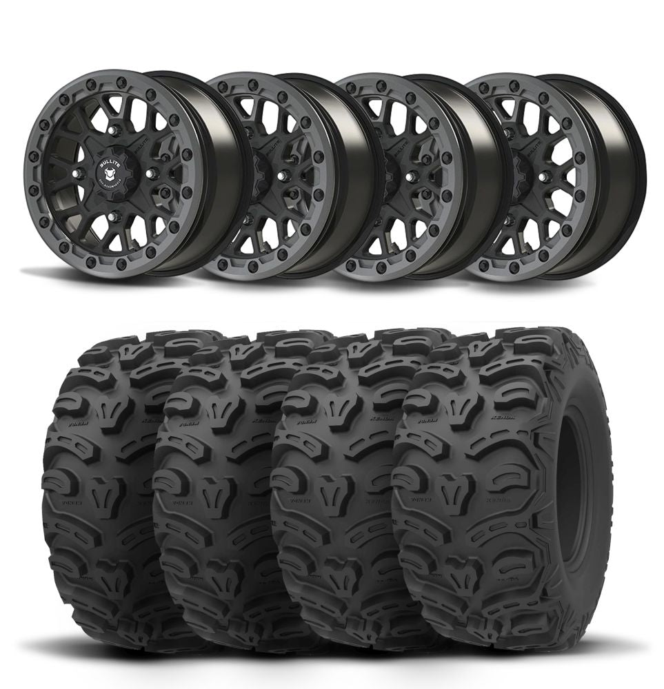 Set of Four Bullite Rider Wheels 14" Gray And Kenda K587 Bearclaw HTR Tires [26x11R-14]