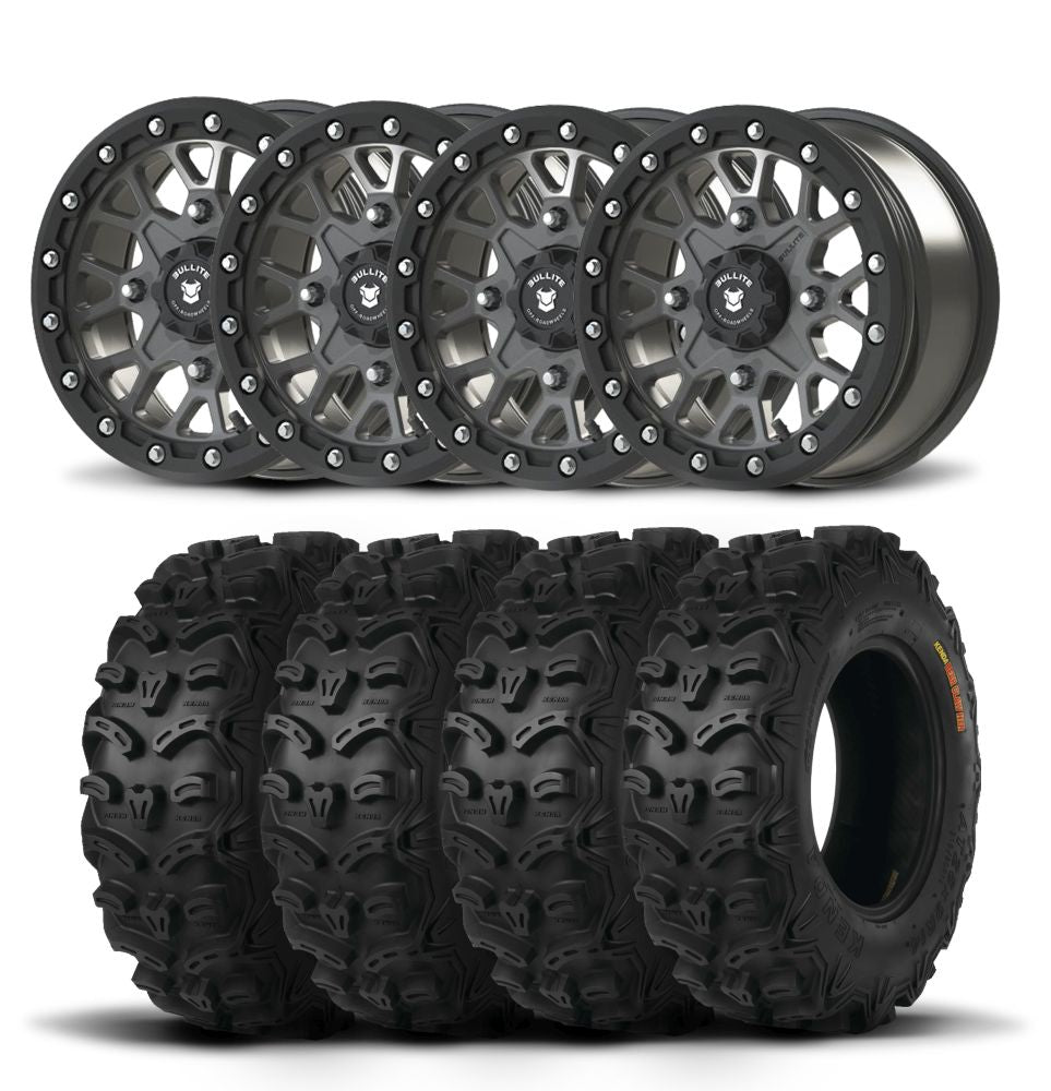 Set of Four Bullite Rider Wheels 14" Gray And Kenda K587 Bearclaw HTR Tires [26x9R-14]