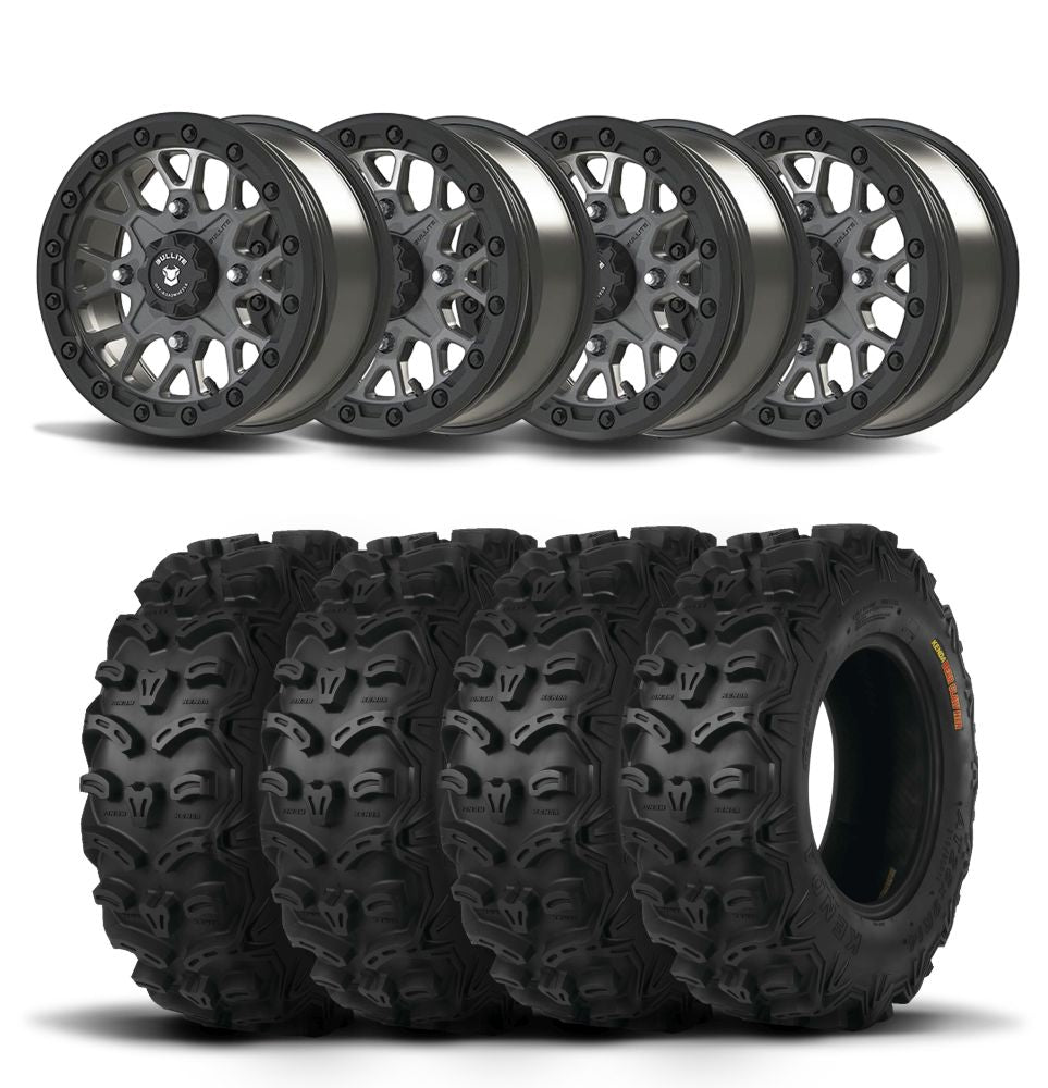 Set of Four Bullite Rider Wheels 14" Gray And Kenda K587 Bearclaw HTR Tires [27x9.5R-14]