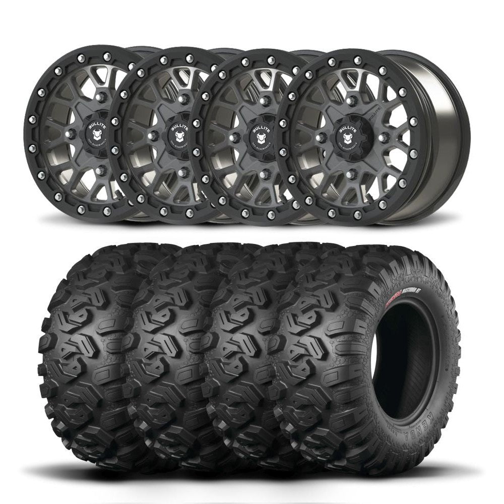 Set of Four Bullite Rider Wheels 15" Gray And Kenda K3201 Mastodon HT Tires [35x10R-15]