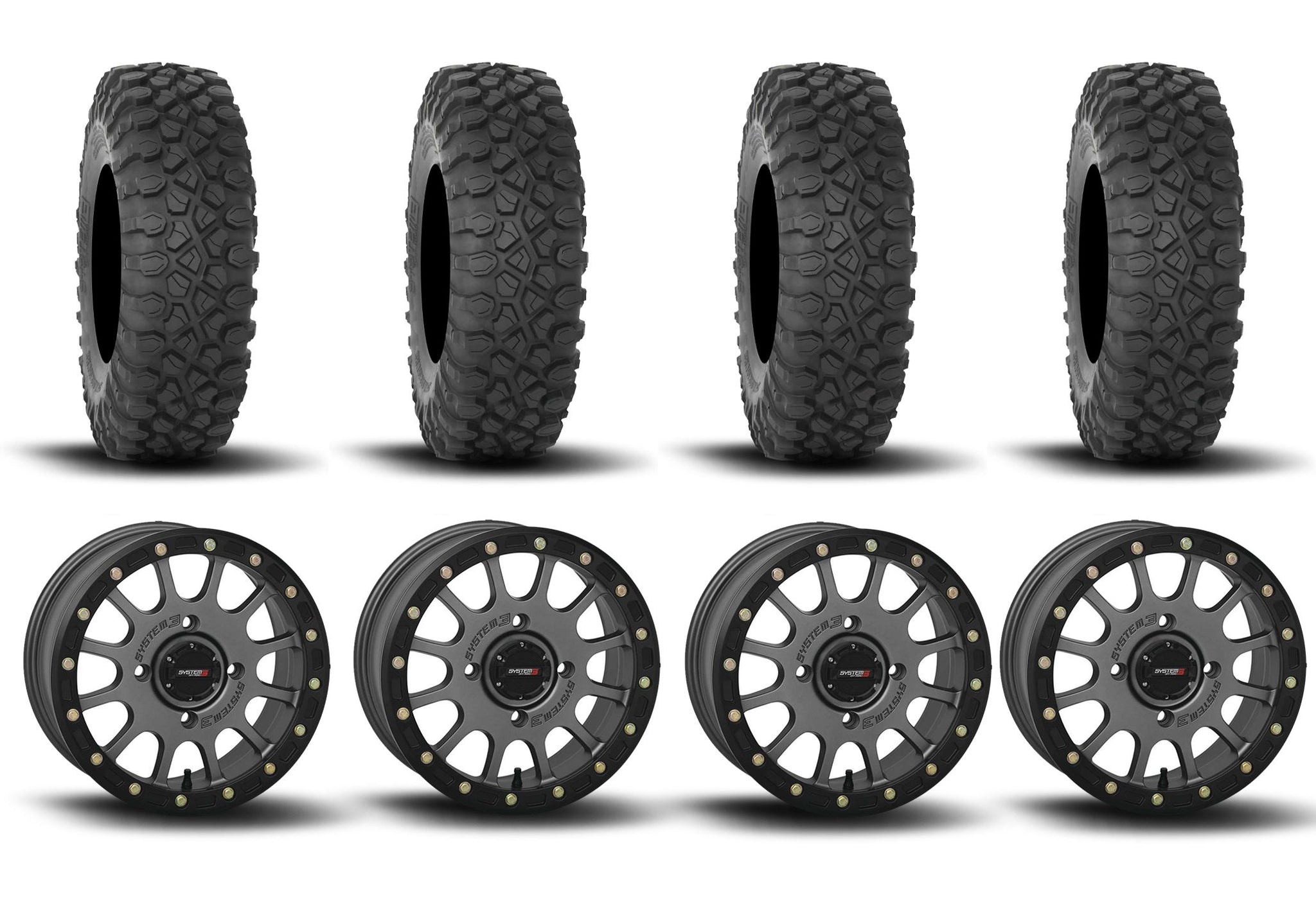 System 3 SB-5 Beadlock Gun Metal Grey 15" Wheels And XC450 Tires [33x10R-15]
