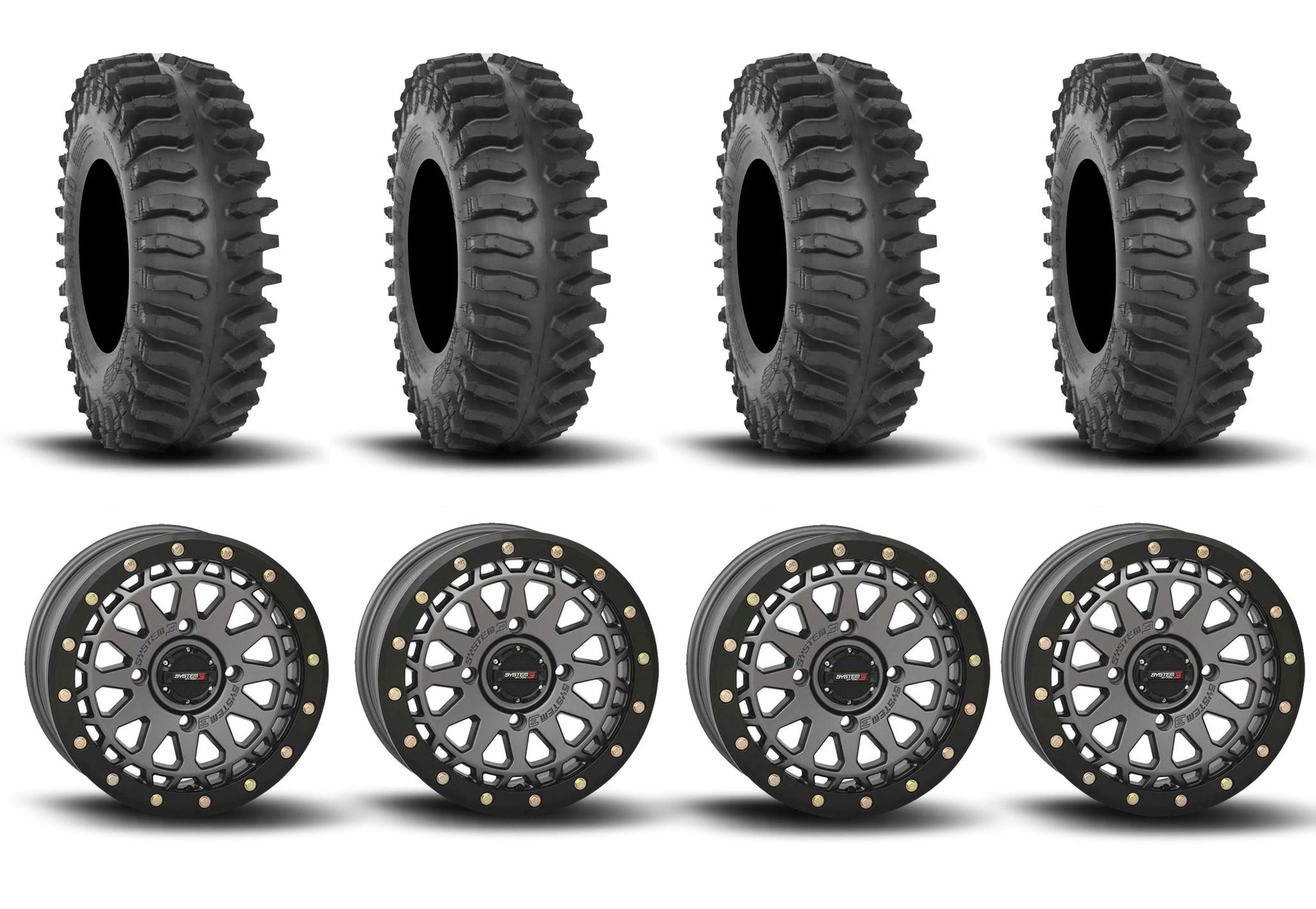 System 3 SB-6 Beadlock Gun Metal Grey 15" Wheels And XT400 Tires [33x10R-15]