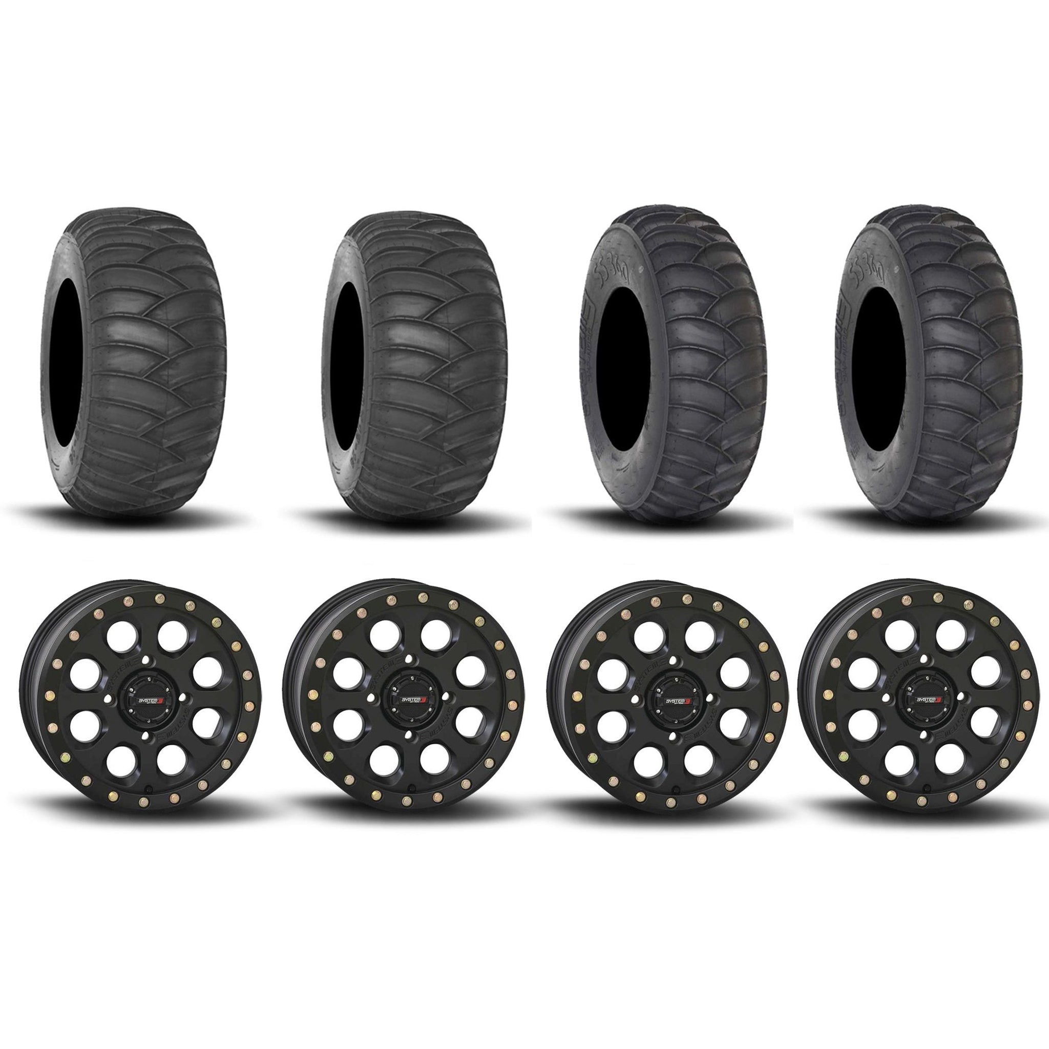 System 3 SB-7 Beadlock Matte Black 15" Wheels And SS360 Sand/Snow Tires [32x10-15] ,[32x12-15]