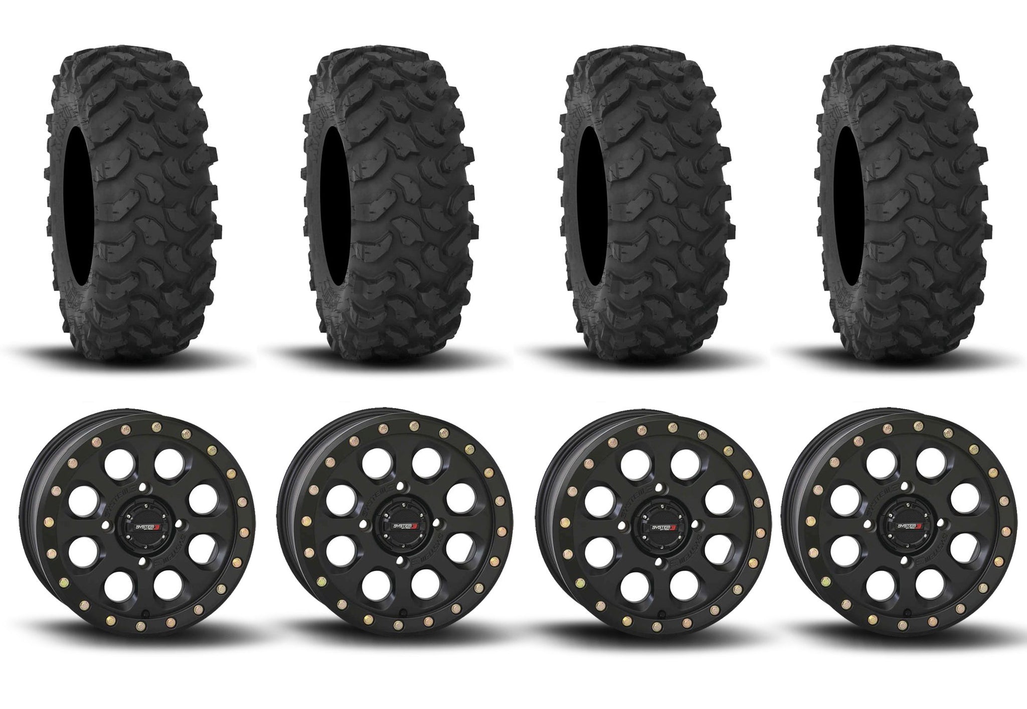 System 3 SB-7 Beadlock Matte Black 15" Wheels And XTR370 Tires [30x10-15]