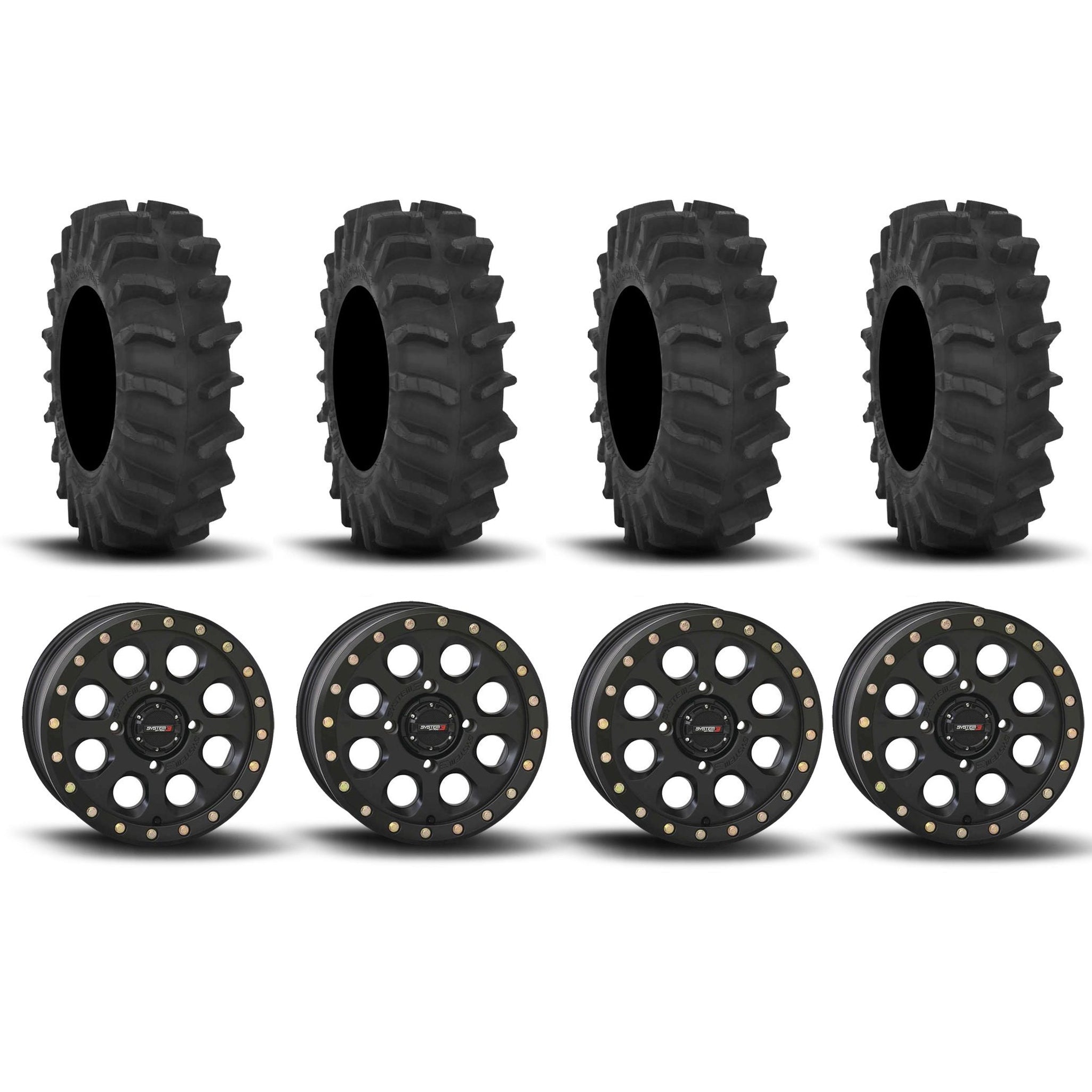 System 3 SB-7 Beadlock Matte Black 18" Wheels And XM310 Extreme Mud Tires [33x9.5-18]