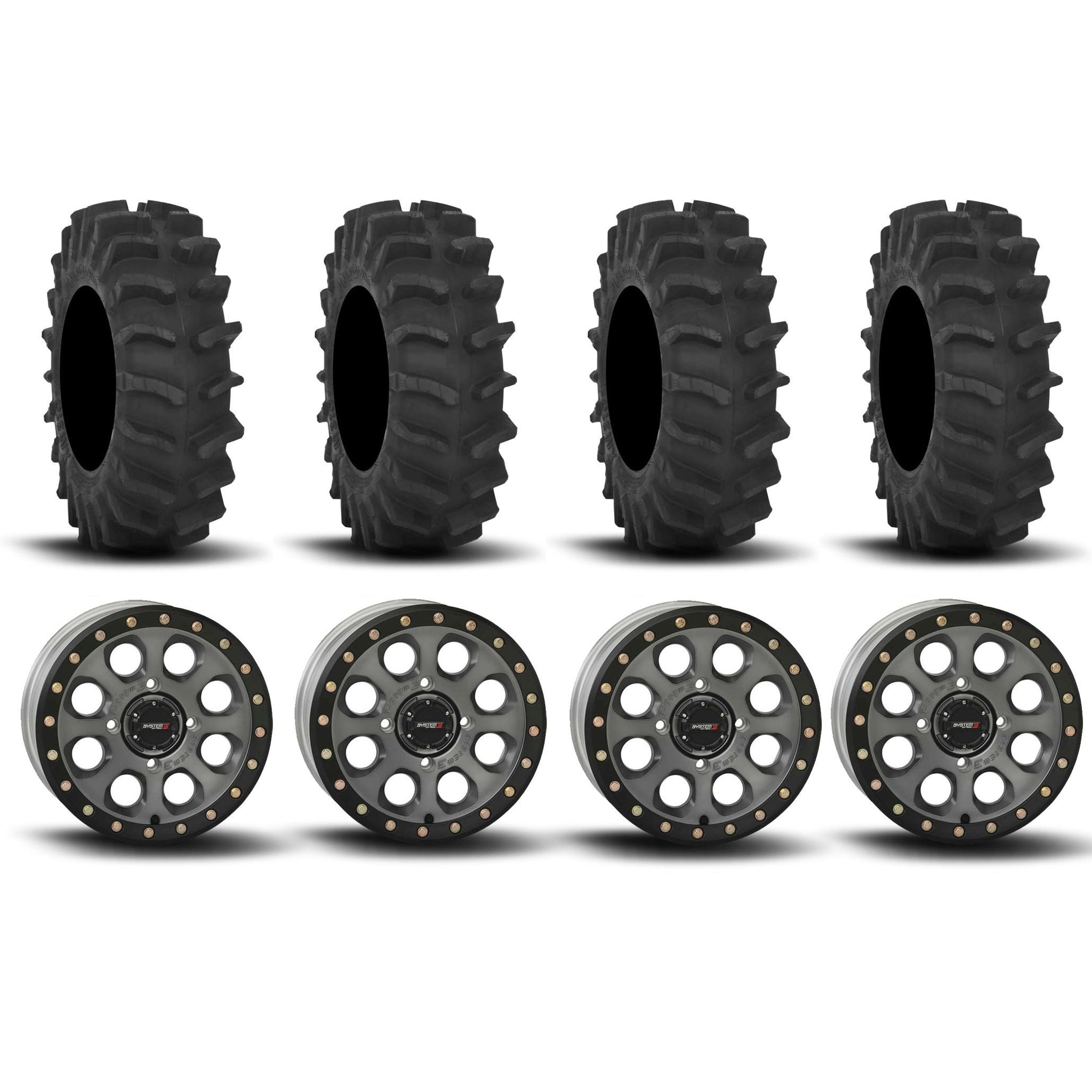 System 3 SB-7 Beadlock Titanium 18" Wheels And XM310 Extreme Mud Tires [35x9.5-18]