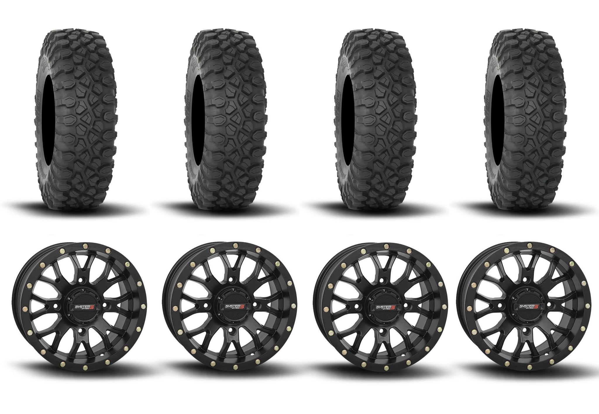 System 3 ST-3 Simulated Beadlock Matte Black 15" Wheels And XC450 Tires [35x10R-15]