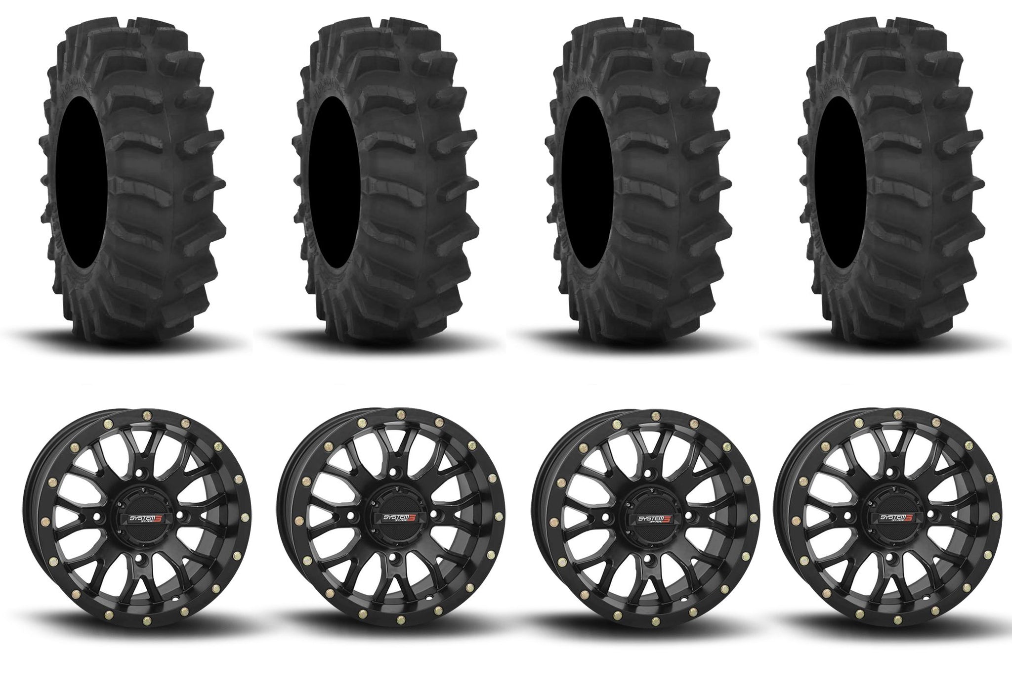 System 3 ST-3 Simulated Beadlock Matte Black 20" Wheels And XM310 Extreme Mud Tires [34x9-20]
