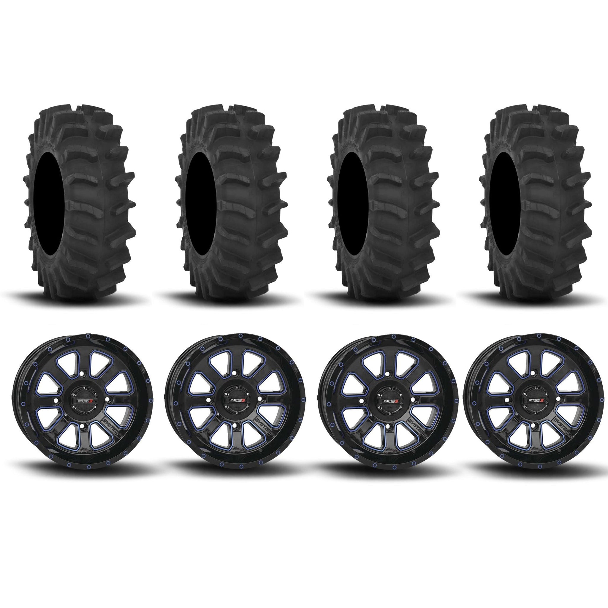 System 3 ST-4 Aluminum Gloss Black/Blue 20" Wheels And XM310 Extreme Mud Tires [34x9-20]