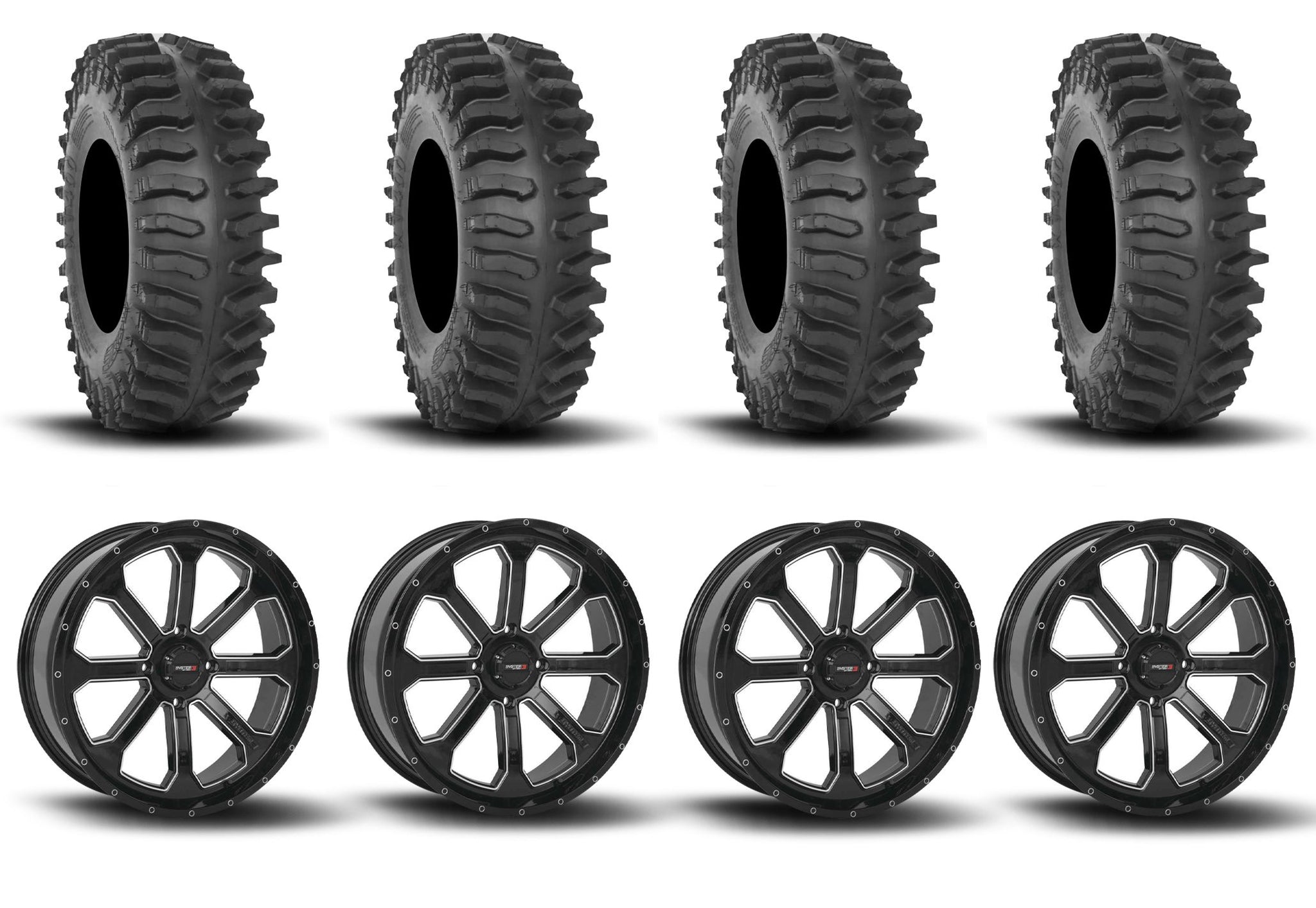 System 3 ST-4 Aluminum Gloss Black/Machined 20" Wheels And XT400 Tires [33x9.5R-20]