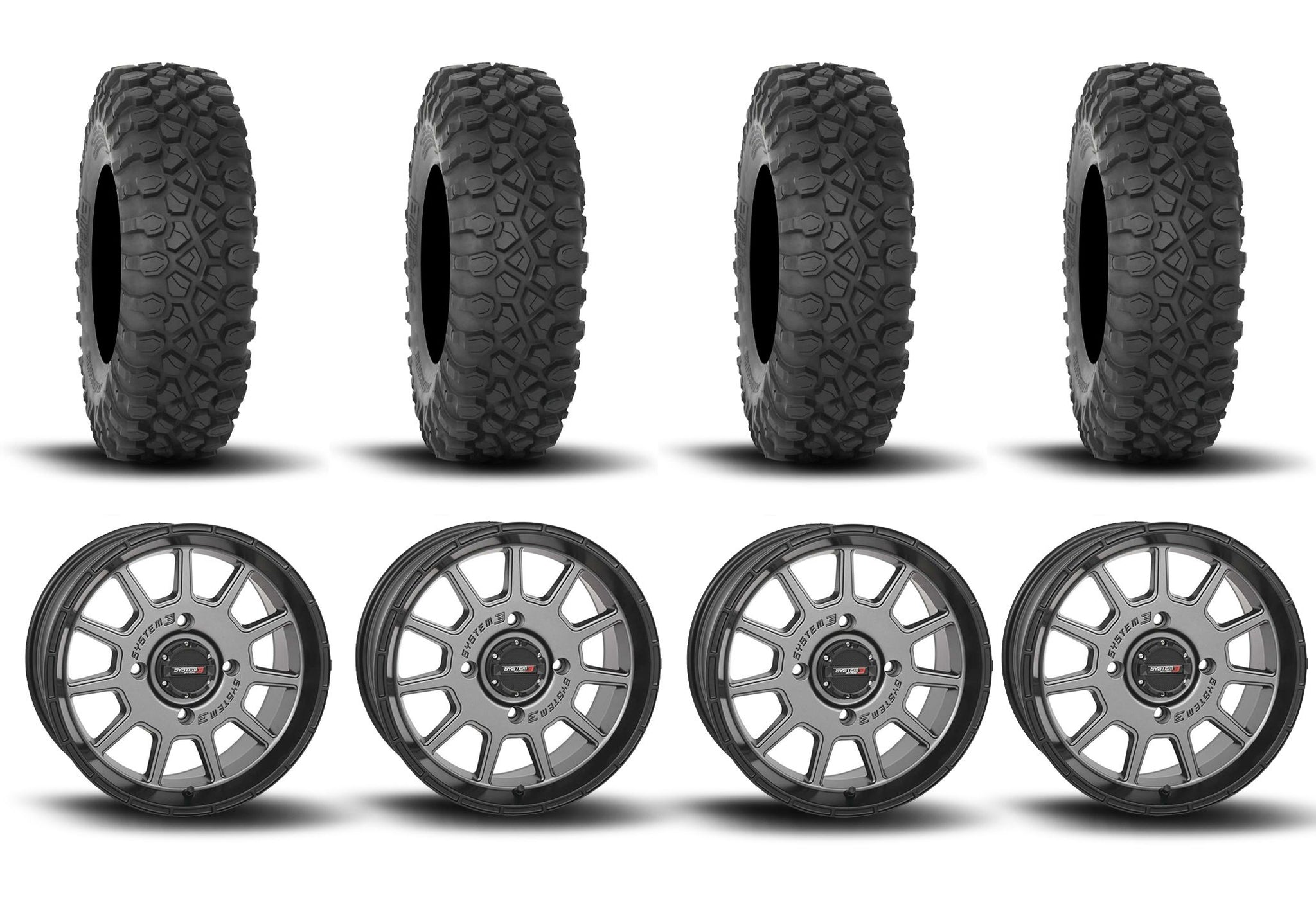 System 3 ST-5 Aluminum Gun Metal Grey 15" Wheels And XC450 Tires [30x10R-15]
