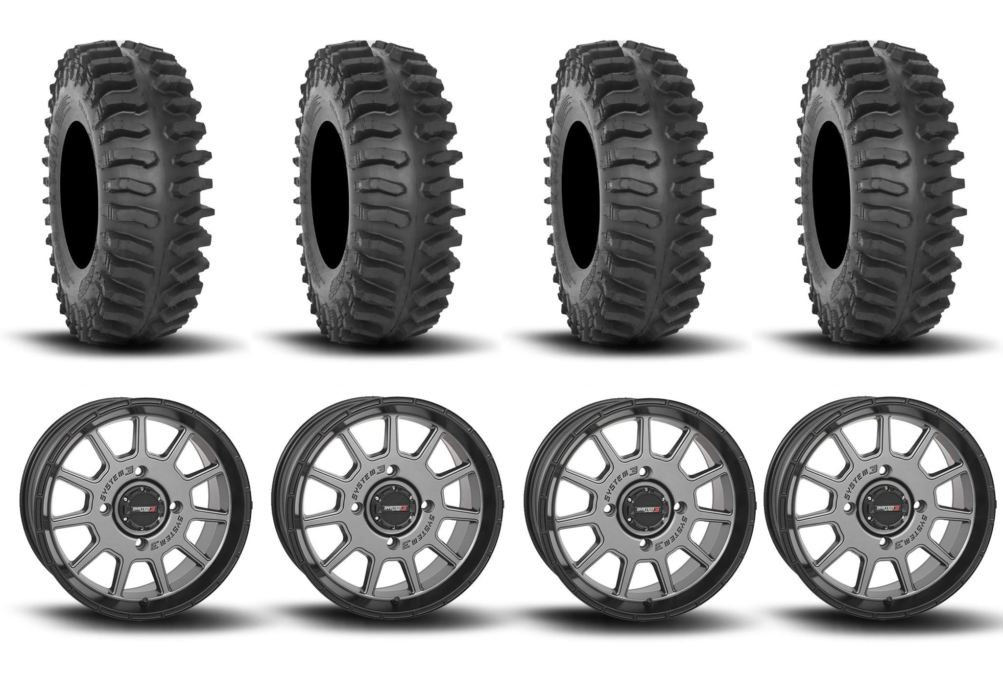 System 3 ST-5 Aluminum Gun Metal Grey 15" Wheels And XT400 Tires [30x10R-15]