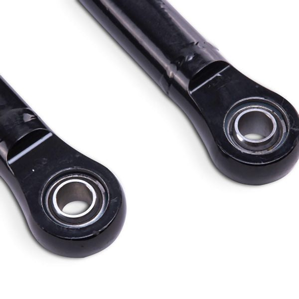- Massive replaceable heim joints for camber and toe adjustability without sacrificing strength.