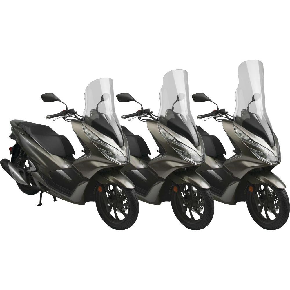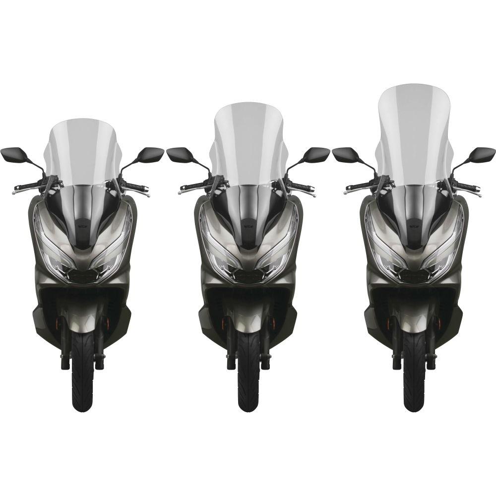 - The PCX125/150 screens measure 12-3/4" (32.4cm), 14-3/4" (37.4cm), and 16-1/2" (42.0cm) tall (measured vertically from the top of stock headlight shroud to the top of the screen) and are 3.0mm thick