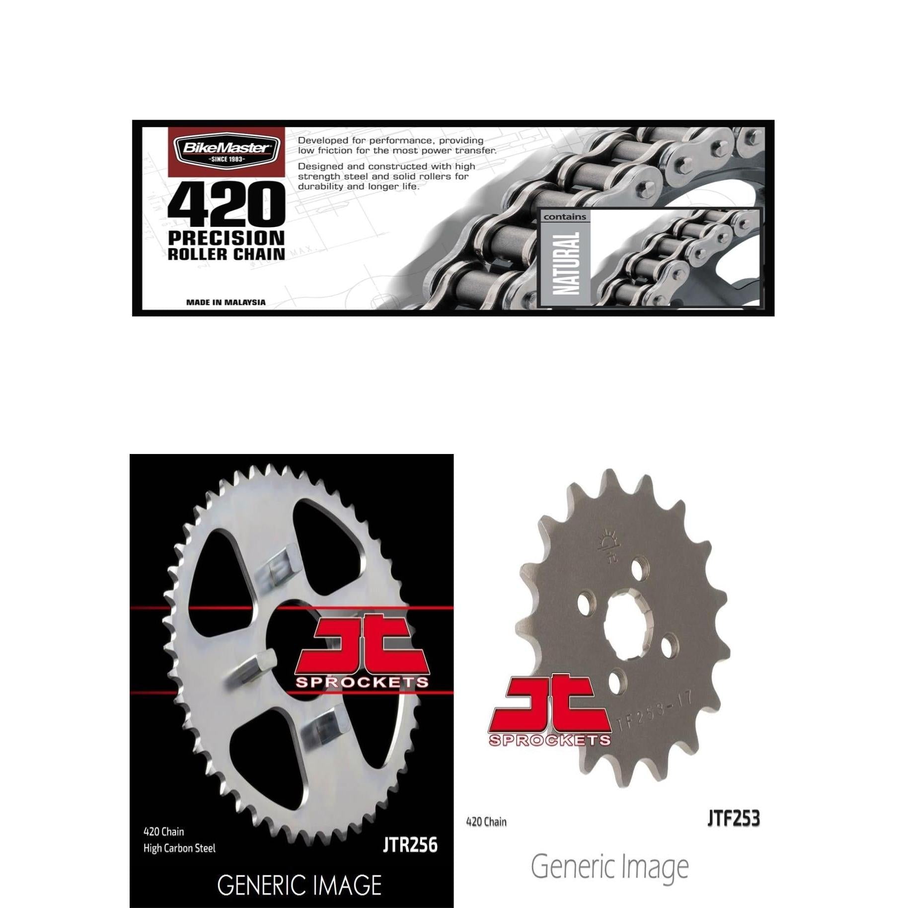 BIKEMASTER 420 Precision Roller Chain Natural, JT Front & Rear Steel Sprocket Kit for ATV/UTV HONDA ATC70 1976-1981 O.E.M. Gearing 14/35BIKEMASTER 420 Precision Roller Chain