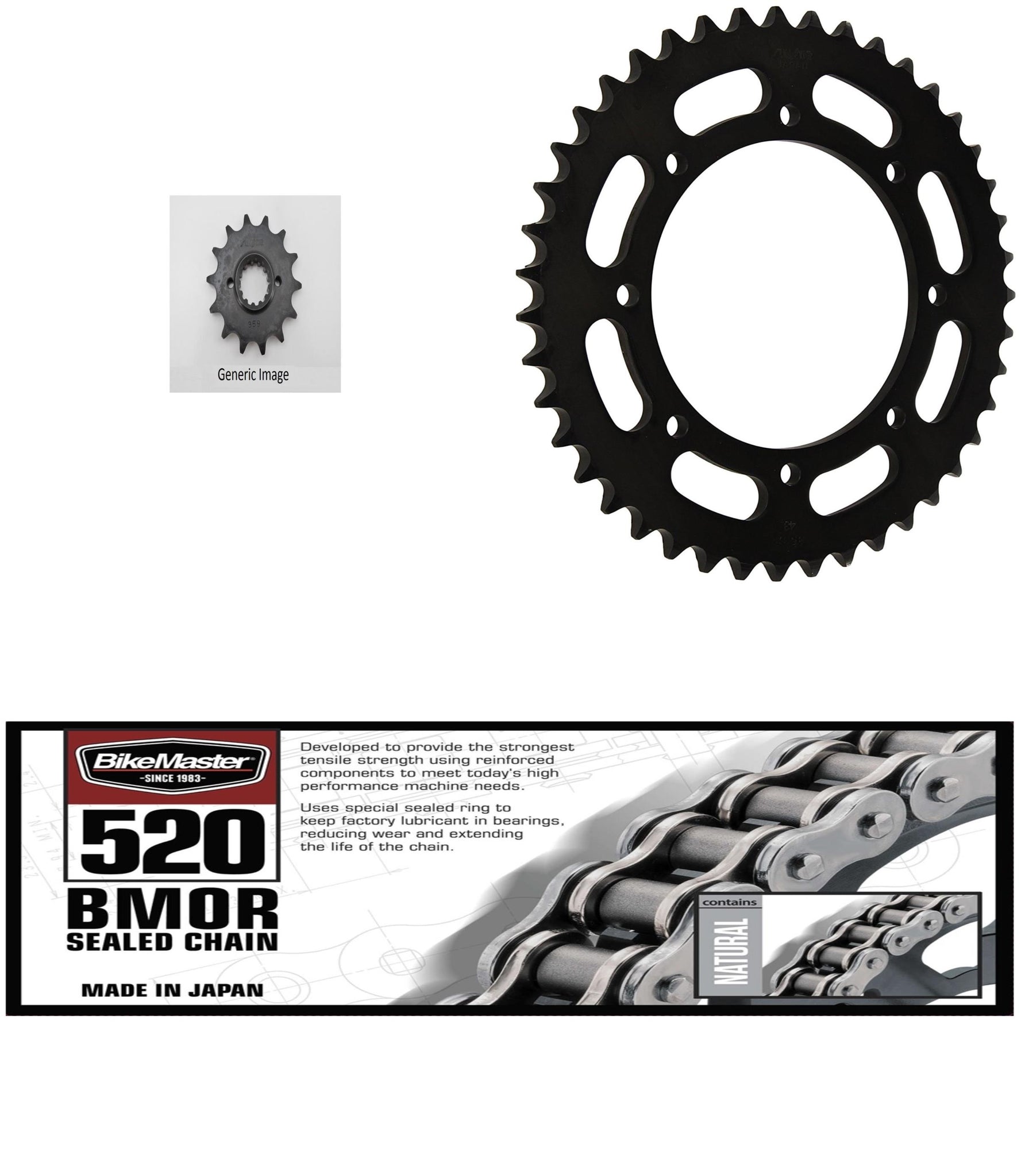 BIKEMASTER 520 BMOR Sealed Chain, SUNSTAR Front & Rear Steel Sprocket Kit for Street KAWASAKI KLR 650 1990-2016 O.E.M. Gearing 15/43