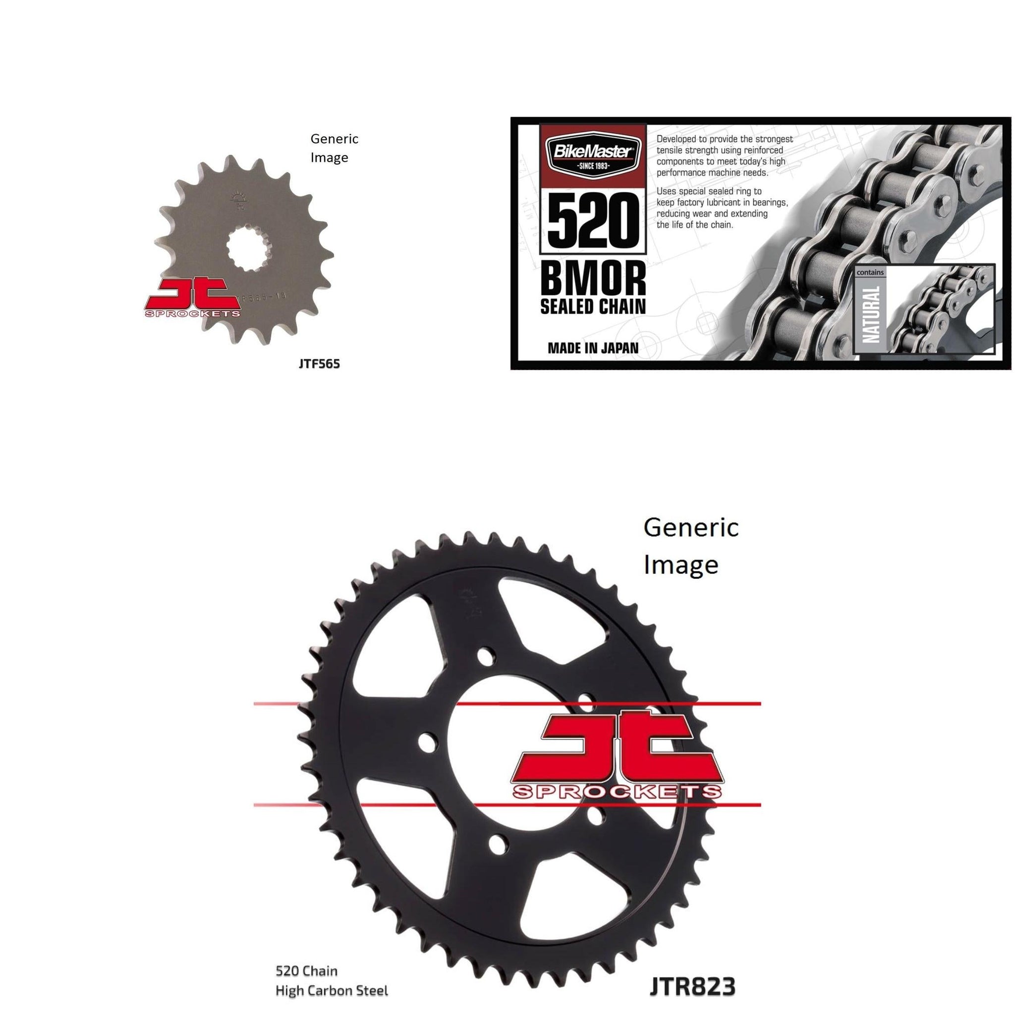 BIKEMASTER 520 BMOR Sealed Chain Natural, JT Front & Rear Sprocket Kit for Street SUZUKI SFV650 Gladius 2009-2014 O.E.M. Gearing 15/46BIKEMASTER 520 BMOR Sealed Chain