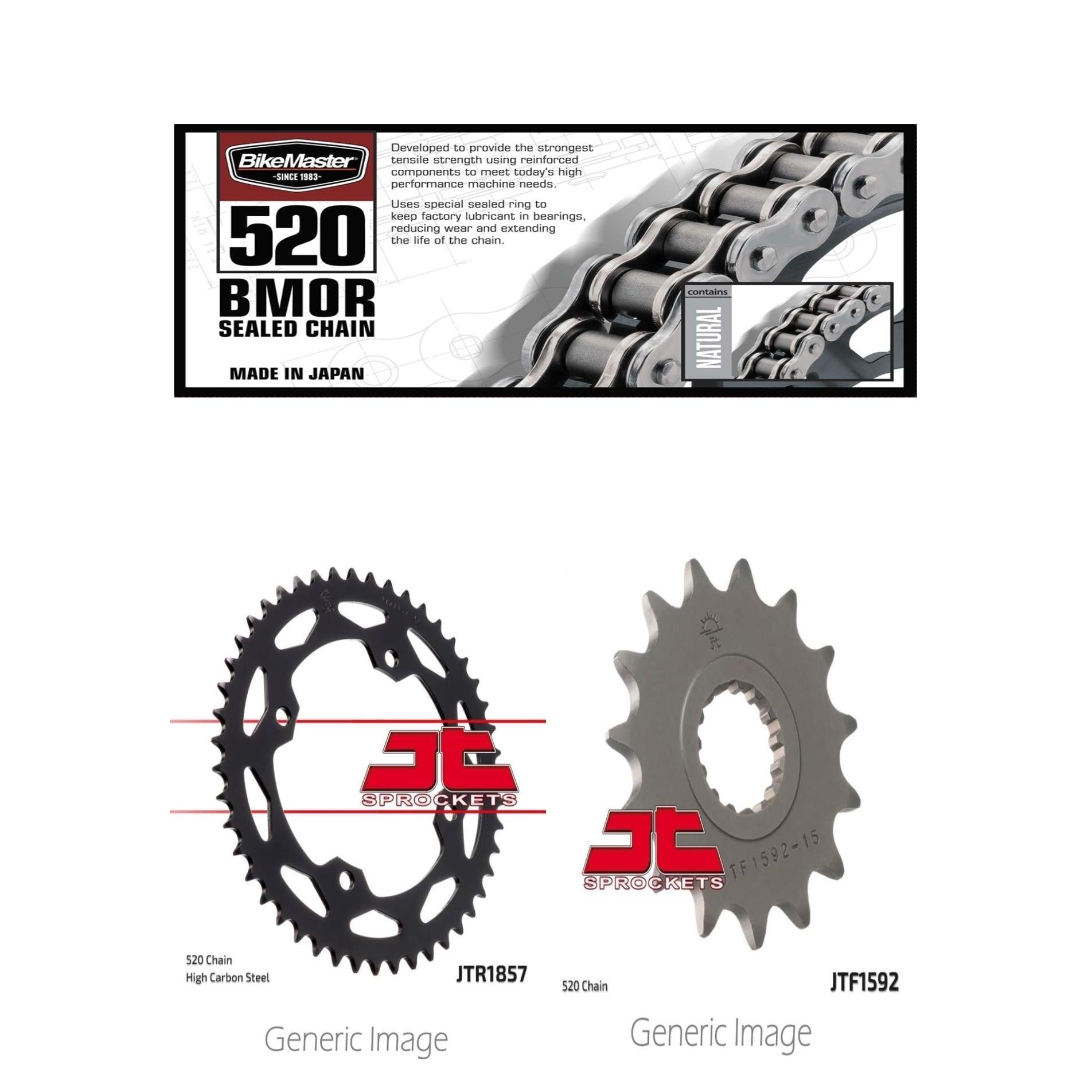 BIKEMASTER 520 BMOR Sealed Chain Natural, JT Front & Rear Steel Sprocket Kit for ATV/UTV YAMAHA YFZ450R 2009-2016 O.E.M. Gearing 14/38BIKEMASTER 520 BMOR Sealed Chain
