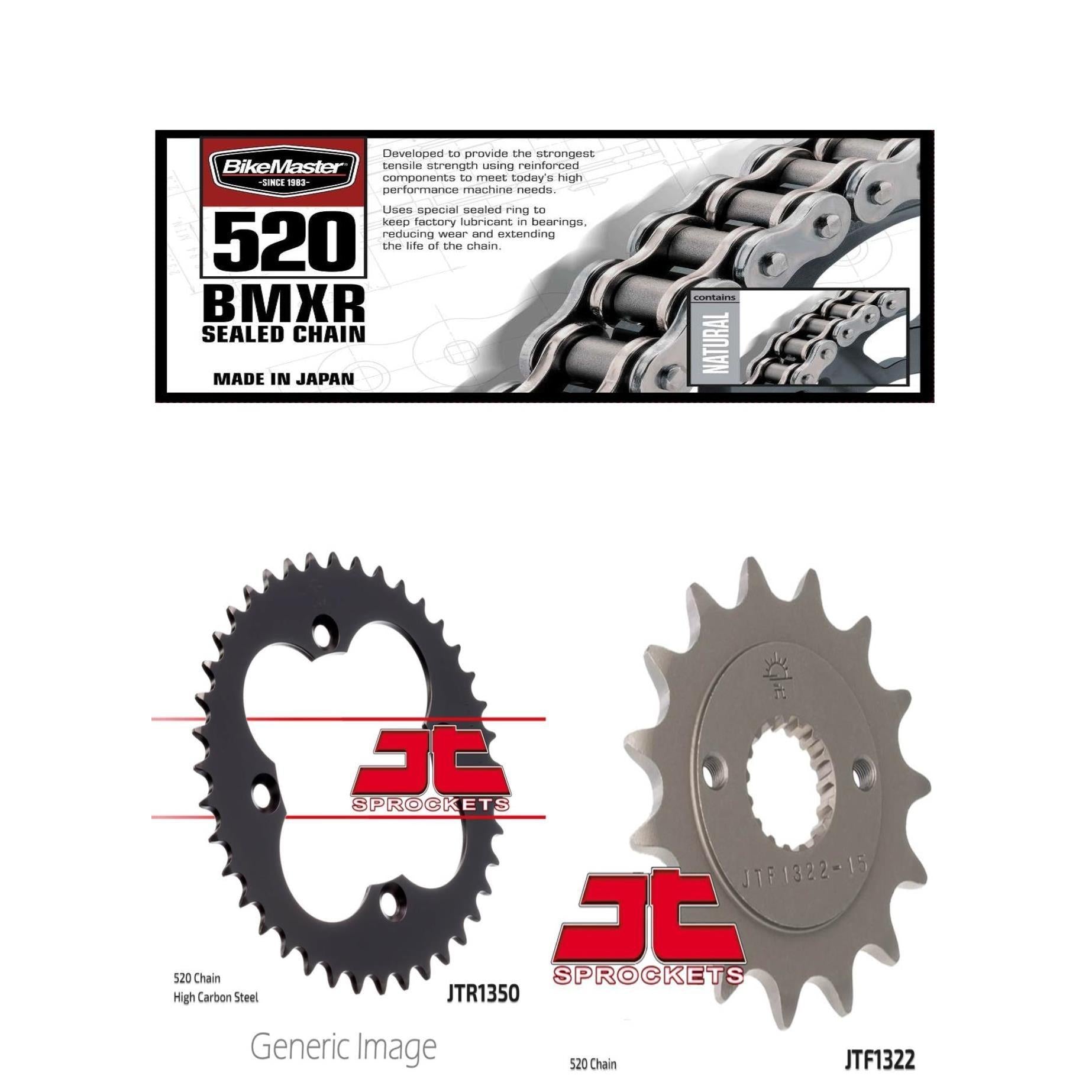 BIKEMASTER 520 BMXR Sealed Chain Natural, JT Front & Rear Steel Sprocket Kit for ATV/UTV HONDA TRX400EX FourTrax 1999-2000 O.E.M. Gearing 15/38BIKEMASTER 520 BMXR Sealed Chain