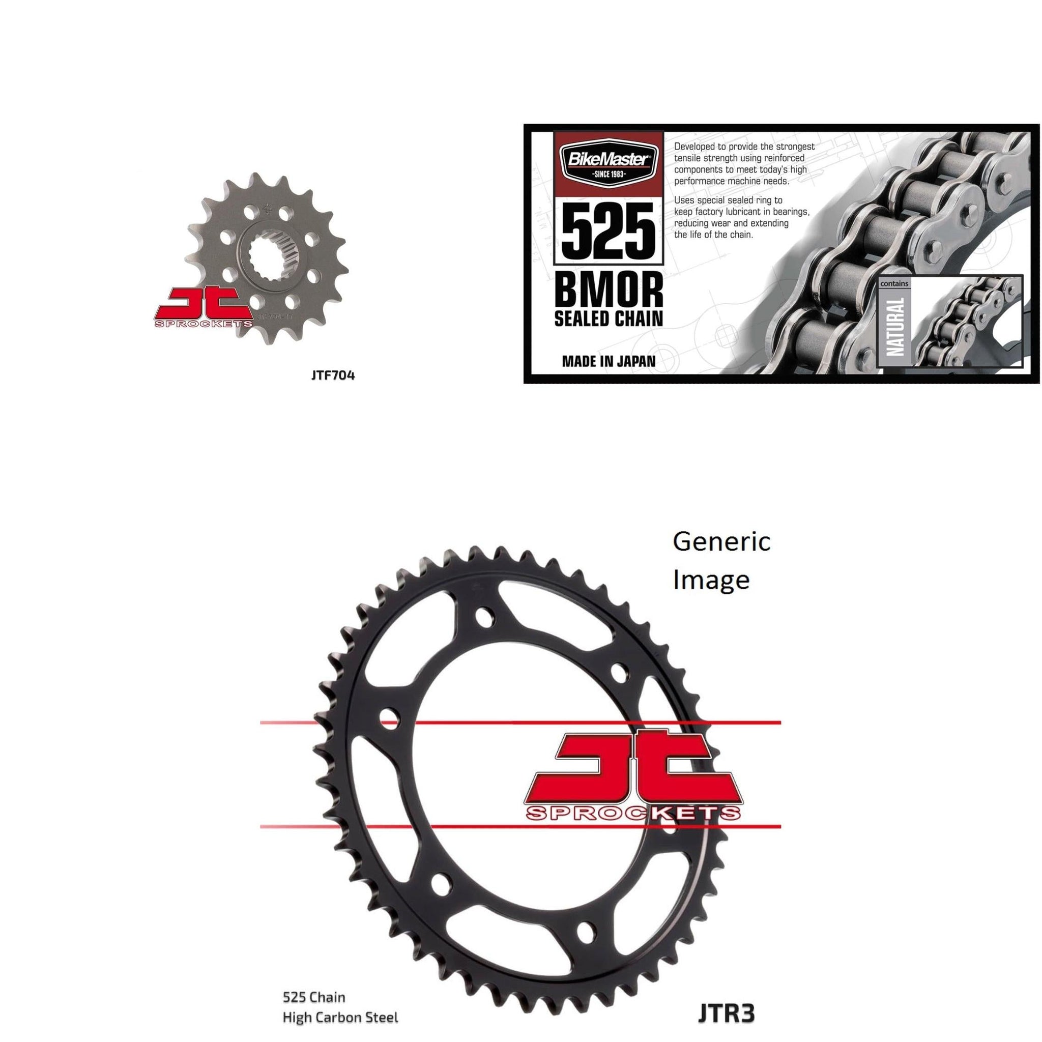 BIKEMASTER 525 BMOR Sealed Chain Natural, JT Front & Rear Sprocket Kit for Street BMW F700GS 2013-2016 O.E.M. Gearing 17/42BIKEMASTER 525 BMOR Sealed Chain