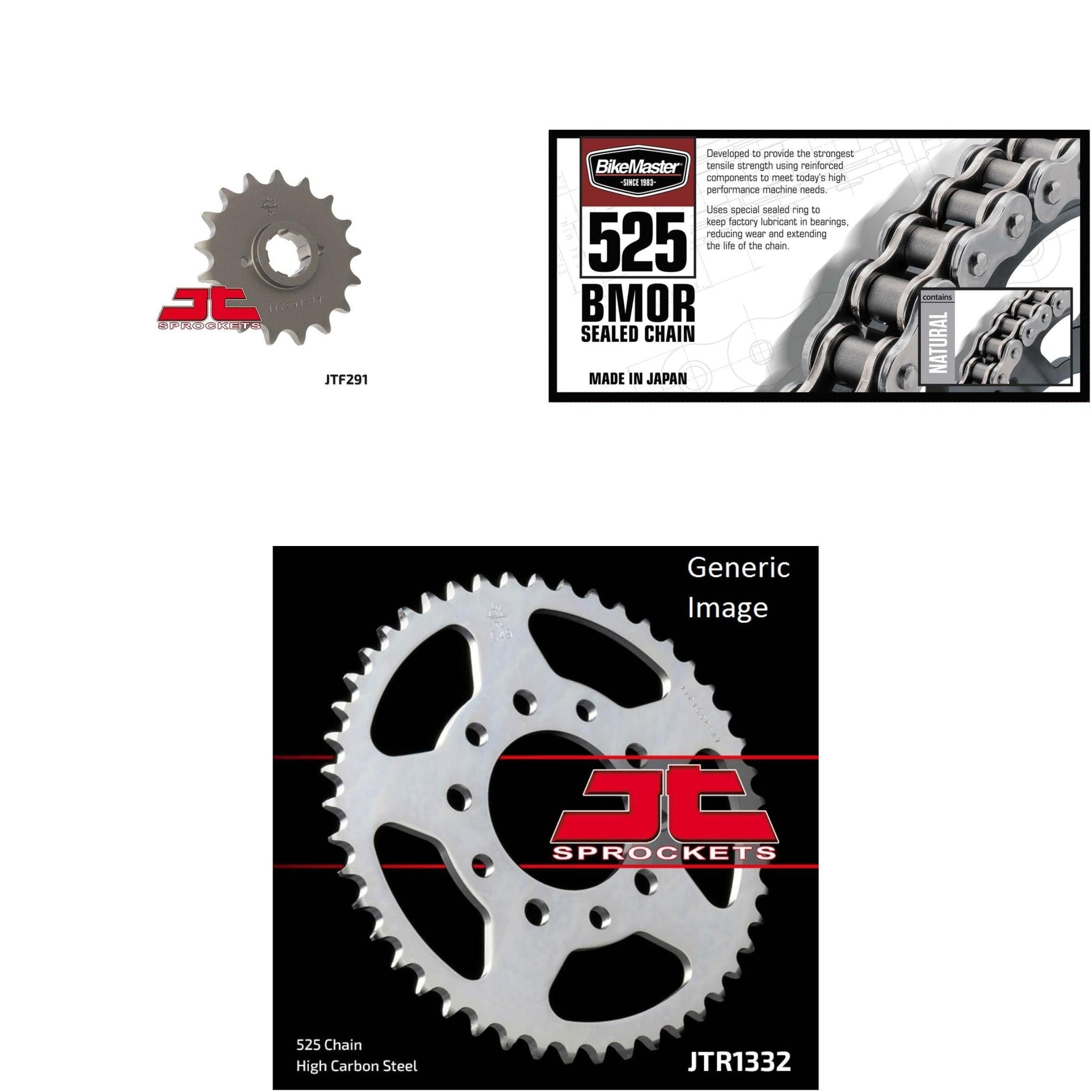 BIKEMASTER 525 BMOR Sealed Chain Natural, JT Front & Rear Sprocket Kit for Street HONDA CMX450 C Rebel 1986-1987 O.E.M. Gearing 17/37BIKEMASTER 525 BMOR Sealed Chain
