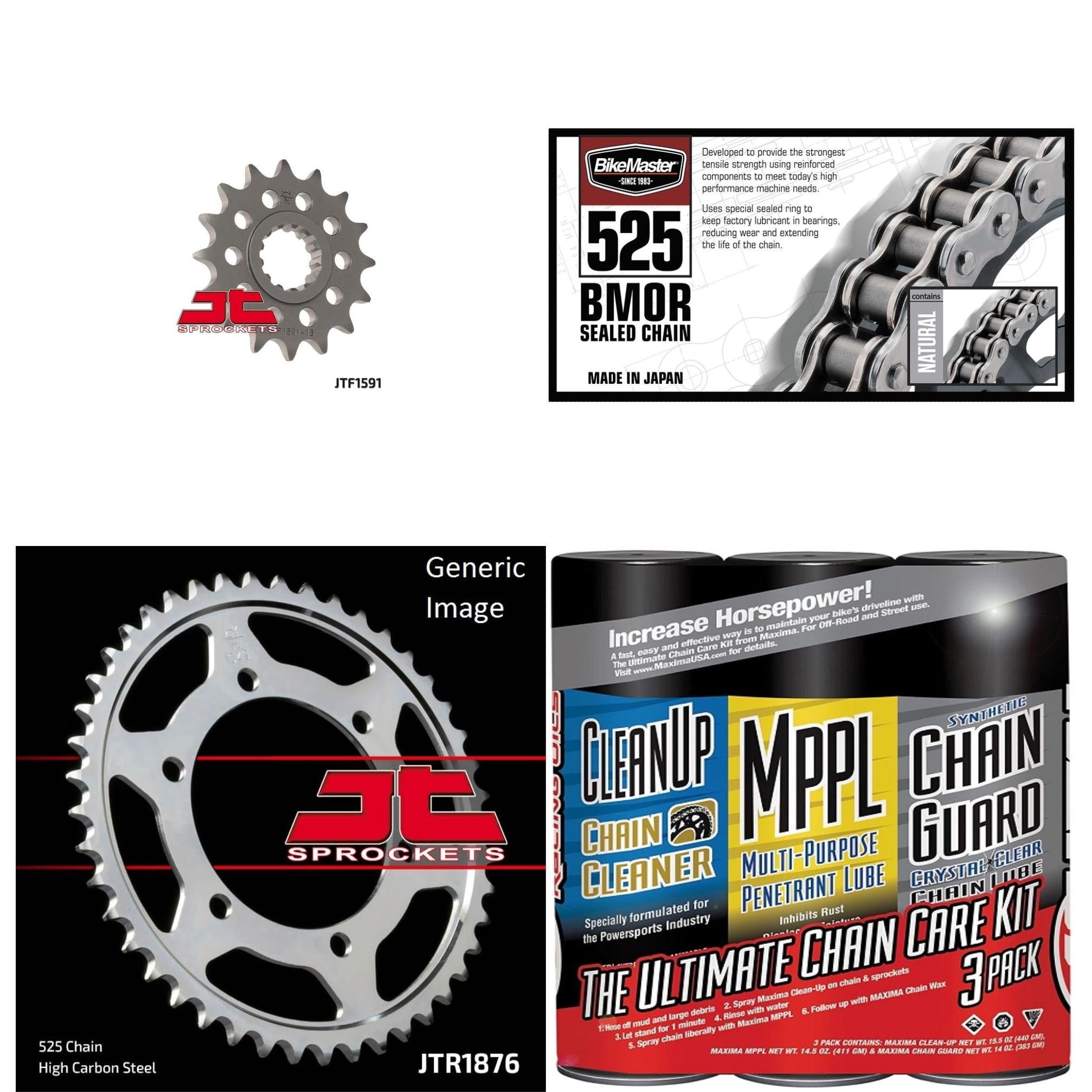 BIKEMASTER 525 BMOR Sealed Chain Natural with MAXIMA Wax, JT Front & Rear Sprocket Kit for Street YAMAHA FZ-09 2014-2017 O.E.M. Gearing 16/45BIKEMASTER 525 BMOR Sealed Chain