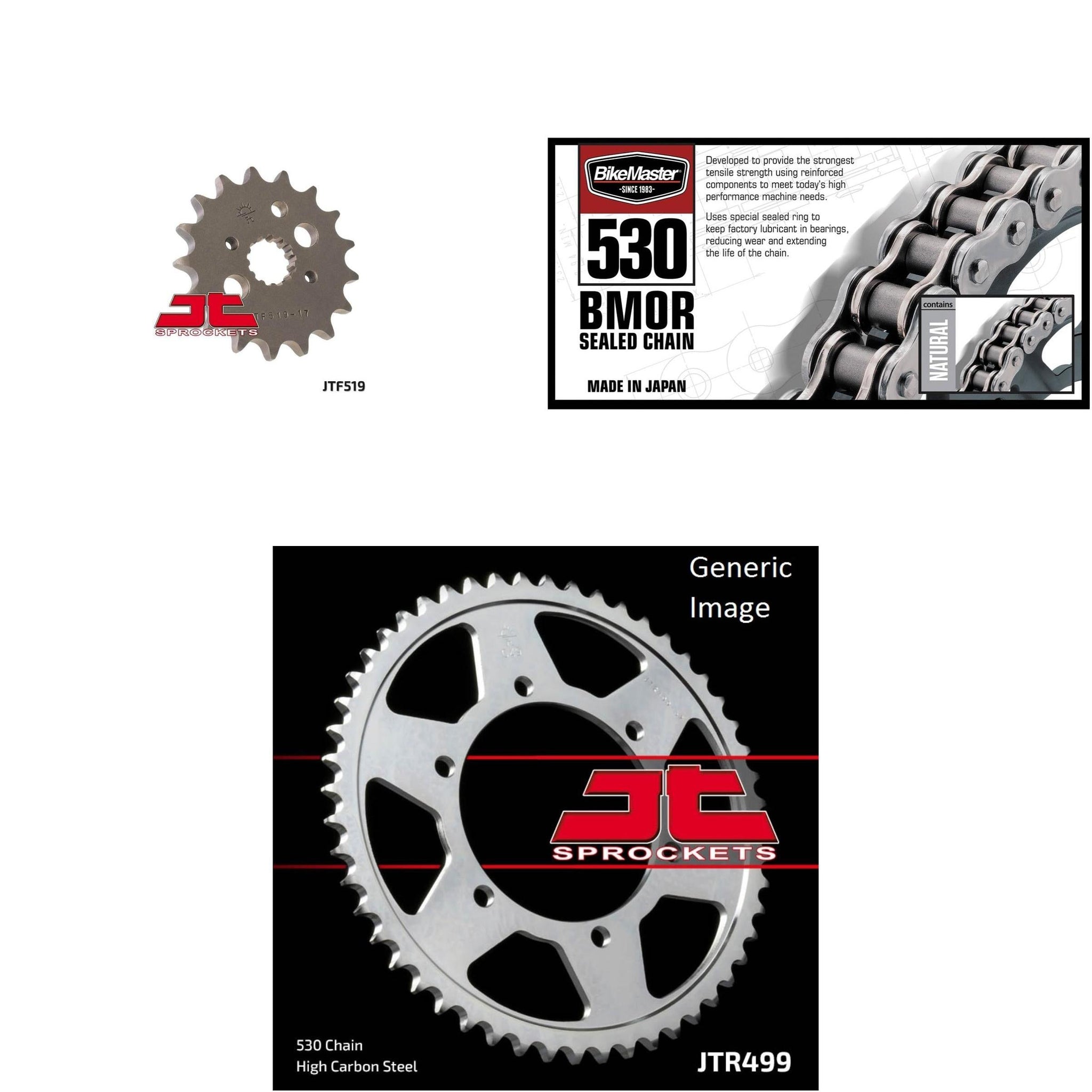 BIKEMASTER 530 BMOR Sealed Chain Natural, JT Front & Rear Sprocket Kit for Street KAWASAKI ZX750-H Ninja ZX7 1989 O.E.M. Gearing 16/46BIKEMASTER 530 BMOR Sealed Chain