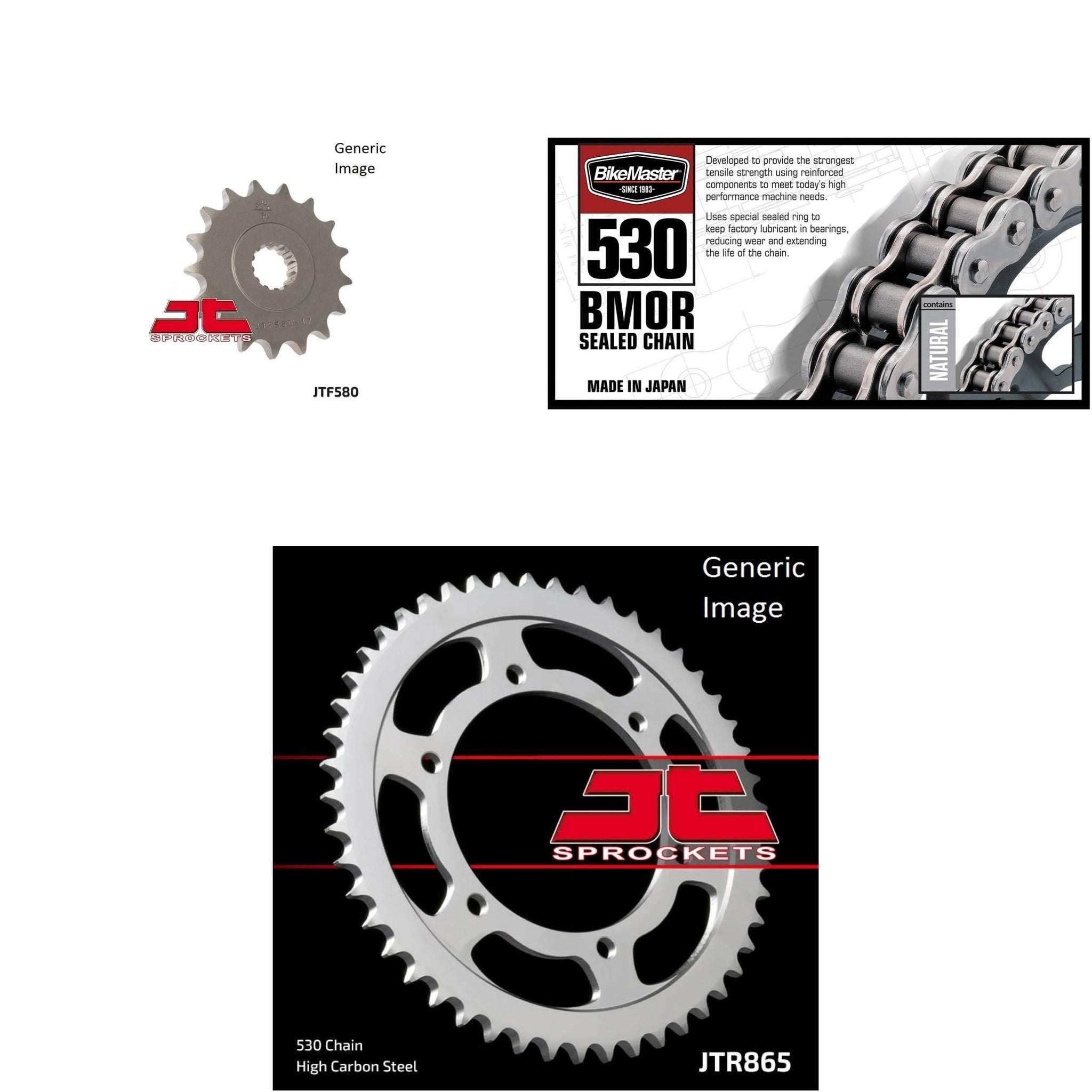 BIKEMASTER 530 BMOR Sealed Chain Natural, JT Front & Rear Sprocket Kit for Street YAMAHA FZ750/C 1986 O.E.M. Gearing 16/45BIKEMASTER 530 BMOR Sealed Chain