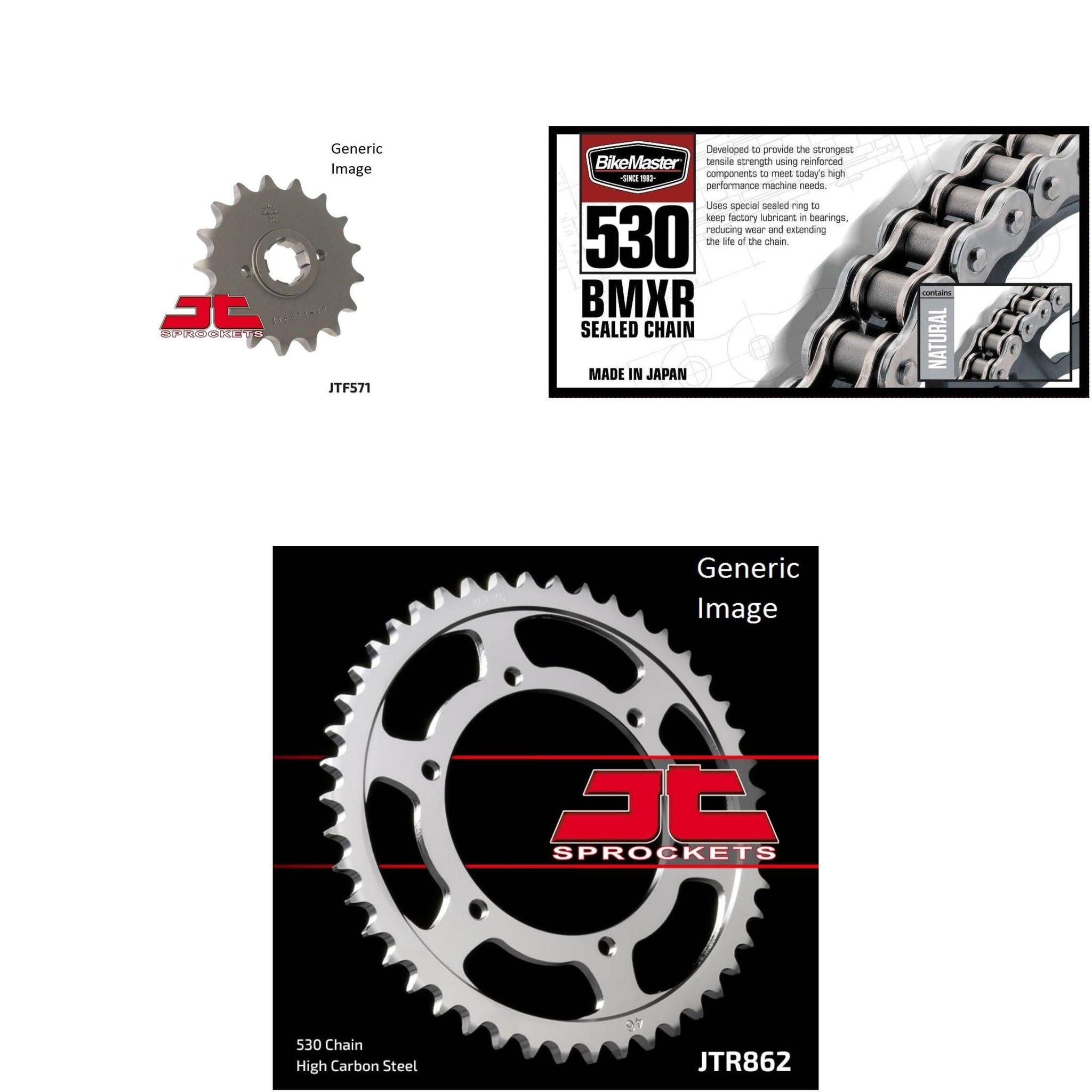 BIKEMASTER 530 BMXR Sealed Chain Natural, JT Front & Rear Sprocket Kit for Street YAMAHA FJ600/C 1984-1985 O.E.M. Gearing 16/45BIKEMASTER 530 BMXR Sealed Chain