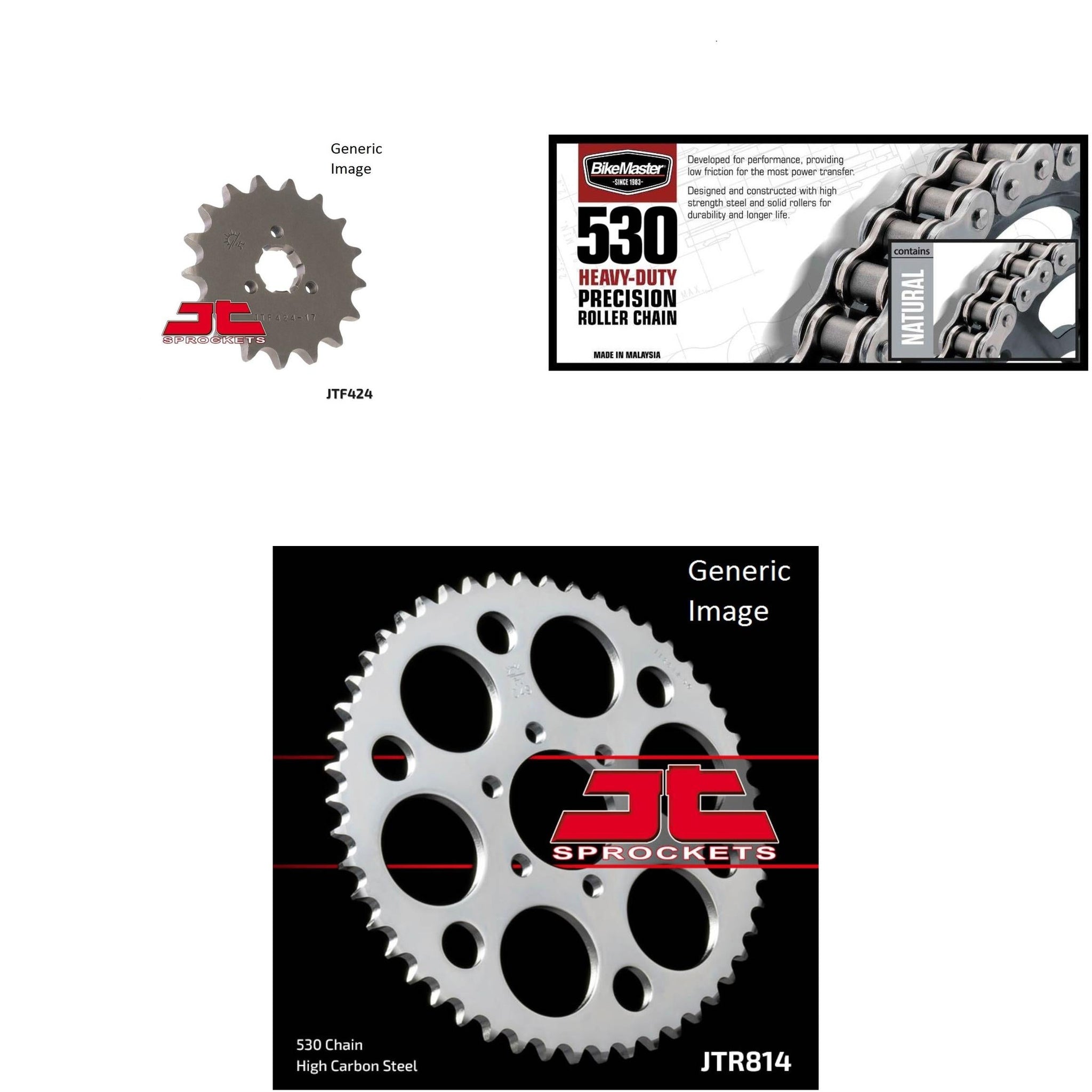 BIKEMASTER 530H Heavy-Duty Precision Roller Chain Natural, JT Front & Rear Sprocket Kit for Street SUZUKI GT380 1973 O.E.M. Gearing 15/42