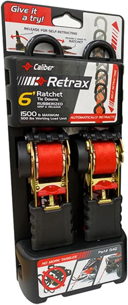 Caliber Retrax 6' Self Rewind Tiedown Strap Kit Pair 13412