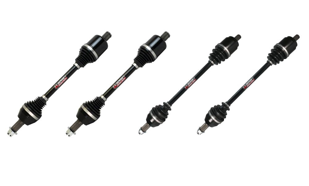 Through years of research and development Demon Powersports has developed an axle that doesn?t burn a hole in your pocket and adheres to the highest quality standards. These axles are bigger, beefier, and stronger. Demon Heavy Duty Axles are built using larger CV joints and shafts, paired with our proprietary dual heat treatment process, and 4340 Chromoly Steel inner CV cage gives these the axles the edge it needs for superior strength and longevity. These axles also utilize a unique double plunge design which allows it to achieve higher articulation angles approximately, the axles are designed to slide on the bar splines allowing for 1.5 inches of travel and 40? articulation over terrain on the inboard joint. The outboard joint can travel 0.5inches and swing from 45?-47? depending on the model. The Demon heavy duty axles are equipped The TPEE (Thermoplastic polyester elastomer) boots which are stronger, stiffer, more fatigue resistant, puncture resistant, and more temperature resistant than a standard OEM boot. Axles use molybdenum grease to provide low friction and smooth motion.Trust in Demon Heavy Duty Axles to keep you riding!!