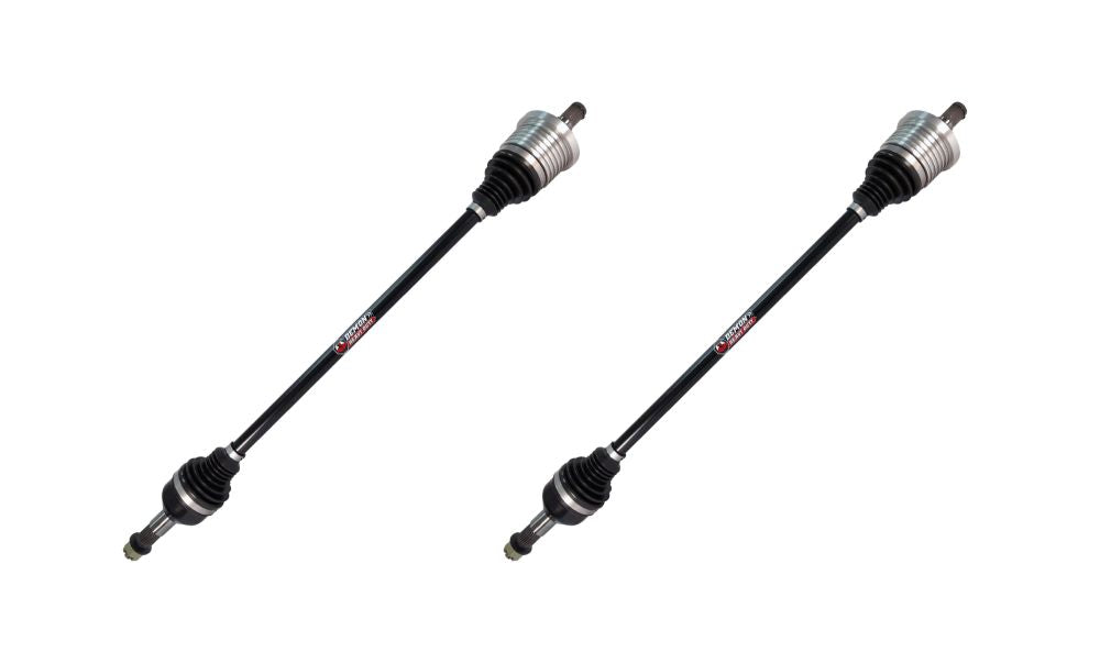 Through years of research and development Demon Powersports has developed an axle that doesn?t burn a hole in your pocket and adheres to the highest quality standards. These axles are bigger, beefier, and stronger. Demon Heavy Duty Lift kit Axles are built using larger CV joints and shafts, paired with our proprietary dual heat treatment process, and 4340 Chromoly Steel inner CV cage gives these the axles the edge it needs for superior strength and longevity. These axles also utilize a unique double plunge design which allows it to achieve higher articulation angles approximately, the axles are designed to slide on the bar splines allowing for 1.5 inches of travel and 40? articulation over terrain on the inboard joint. The outboard joint can travel 0.5inches and swing from 45?-47? depending on the model. The Demon heavy duty axles are equipped The TPEE (Thermoplastic polyester elastomer) boots which are stronger, stiffer, more fatigue resistant, puncture resistant, and more temperature resistant than a standard OEM boot. Axles use molybdenum grease to provide low friction and smooth motion.Trust in Demon Heavy Duty Axles to keep you riding!!