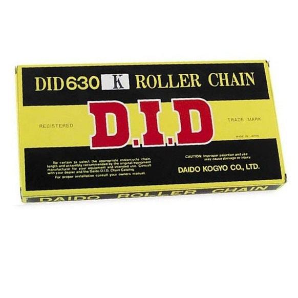 Heavy-Duty Standard Series 630K Chain Color: Natural Links: 88 D.I.D chain is used by the factory race teams and is the #1 chain manufacturer in the world. Solid rollers. Shot-peened parts. High cylindrical and roundness accuracy. Exacting tolerances provide low friction. Pre-stretched. Average tensile strength of 9,920 lbs.