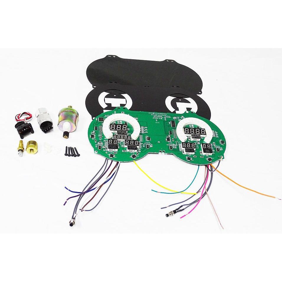 Feel the wind in your hair riding in your 1967-1968 Camaro with a state-of-the-art 1967-1968 Camaro LED Digital Replacement Gauge Panel from Intellitronix. The 67-68 Camaro dash comes with direct fit printed circuit boards, custom fit smoked plexiglass faceplate, universal water temperature S8013, oil pressure S8434, and speedometer S9013 sending units including sender and sensor for vehicles without electronic transmission or cruise control, and instructions for installation.Brand: Intellitronix
