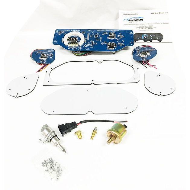 Calling all 1969-1970 Ford Mustang owners, check out the new 1969-1970 Ford Mustang LED Digital Direct Fit Replacement Gauge Panel from Intellitronix. The 69-70 Ford Mustang LED Digital Gauge Panel features a Speedometer and Tachometer combination along with 4 other gauges. The replacement panel comes complete with direct fit printed circuit boards, custom fit smoked plexiglass faceplate, universal temperature, oil pressure, and speedometer sending units with senders and sensors for vehicles without electronic transmission or cruise control, and instructions for installation.Brand: Intellitronix