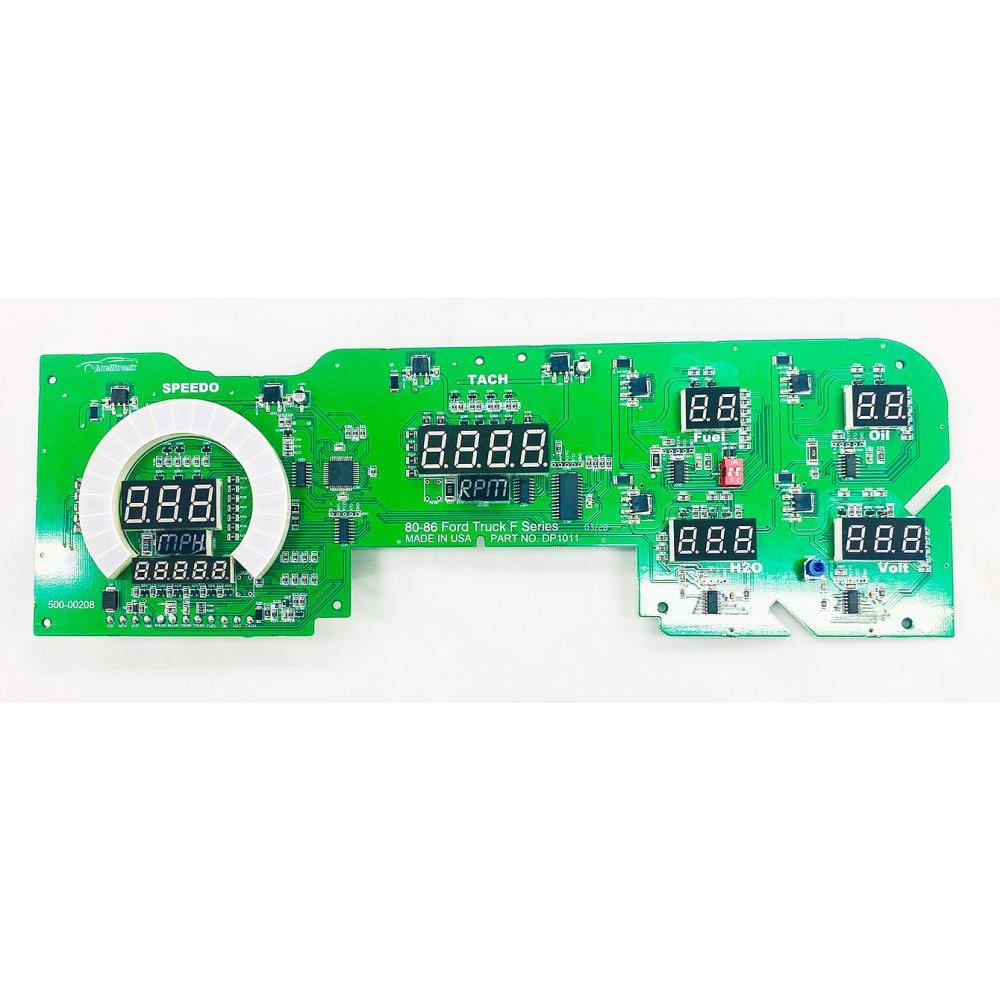 Dress up your 1980-86 Ford Truck F Series with the latest LED Digital Replacement Gauge Panel by Intellitronix. This smashing panel comes complete with direct fit printed circuit boards, custom fit smoked plexiglass faceplate, universal temperature, oil pressure, and speedometer sending units with sender and sensor for vehicles without electronic transmission or cruise control, and instructions for installation.Brand: Intellitronix