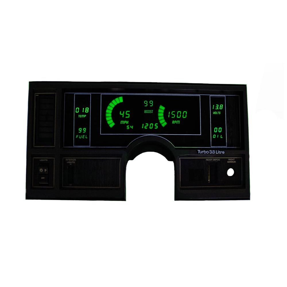 Your 1984-87 Buick Regal Grand National will be the envy of all your friends with a new sophisticated 84-87 Buick Regal Digital Direct Fit Dash Panel Replacement from Intellitronix. The panel comes complete with direct fit printed circuit boards, custom fit smoked plexiglass faceplate, universal temperature and oil pressure sending units, boost gauge and speedometer sending unit with sender and sensor for vehicles without electronic transmission or cruise control, and instructions for installation.Brand: Intellitronix