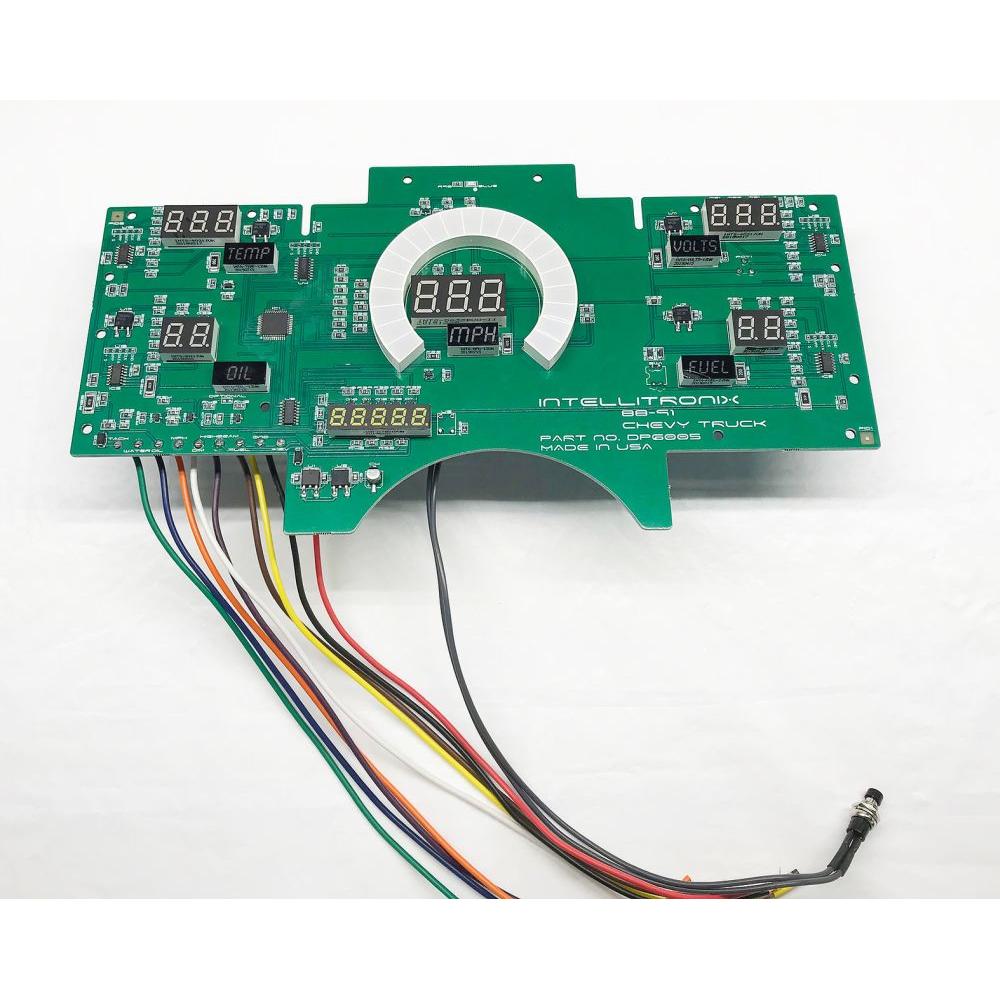 The 1988-91 Chevy Truck has the look and feel of elegance and will make you the envy of all Chevy truck lovers with your new 81-913 Chevy Truck LED Digital Replacement Gauge Panel by Intellitronix. Complete with direct fit printed circuit boards, custom fit smoked plexiglass faceplate, universal temperature, oil pressure, and instructions for installation.Brand: Intellitronix