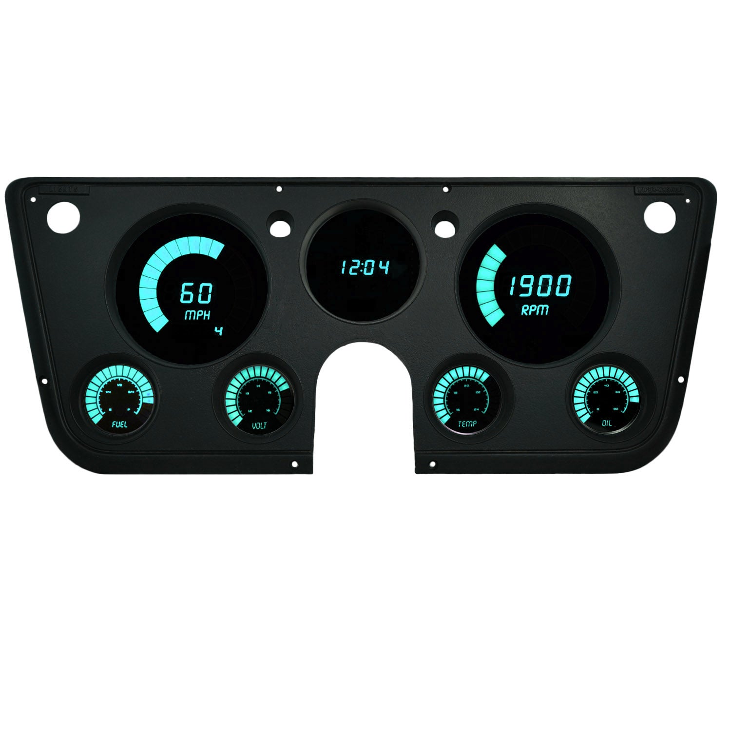 Intellitronix LED digital direct-fit gauge kits make it easy to go from analog to digital. These replacement gauge panel kits come complete with a circuit board, tinted Plexiglas lens plates, mounting hardware, and all necessary sending units and instructions. Intellitronix LED digital kits work with your factory fuel level and cruise control sender or electronic transmission output if so equipped. Plus, you get the cool stuff of modern gauges like 0-60 time, quarter-mile ETs, and high-speed recall, all with the push of a button. The LEDs are available in five colors--red, royal blue, green, teal and arctic white. All Intellitronix products include a lifetime warranty. Speedometer reads up to 255 mph, plus odometer, trip meter, and one-button calibration--regardless of tire size, gear ratio, or transmission