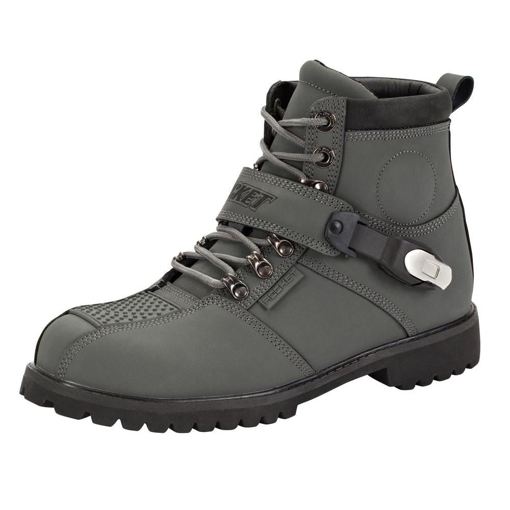 - Military styling and all day riding comfort 2mm, full grain, matte finish leather construction Molded polymeric ankle protection Polymeric ratchet adjustment strap with aluminum quick-lock buckle mechanism Reinforced shifter zone Triple stitching in all stress areas