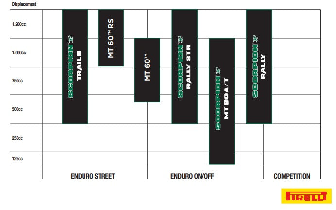 The Pirelli motorcycle tire catalogue includes a wide range of high-tech products suitable for all types of bike and riding style. It includes a comprehensive racing range from circuit to off-road competitions, as well as many tire models intended for road use, which will meet the needs of even the most discerning motorcyclists.