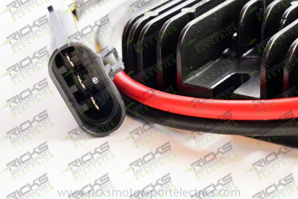 This is a Rick's Motorsport Electrics Hot Shot Series *NEWLY UPGRADED* Aftermarket Rectifier-Regulator. It is designed with cooling Mosfet technology, 70 AMP SERIES circuitry and an inline 50 amp water-resistant fuse. *This is a Series Style replacement for Polaris Sportsman Ace & RZR models that use OE#4013904. The Polaris Manufacture Date is 3/16/12 and later. **The AC wires are in an oval-shaped connector.**Always check the opposite end plug on your stator for corrosion or melting before installing a new rec-reg. We offer a connector replacement kit, our part# 11-118, if the connectors need replacement.
