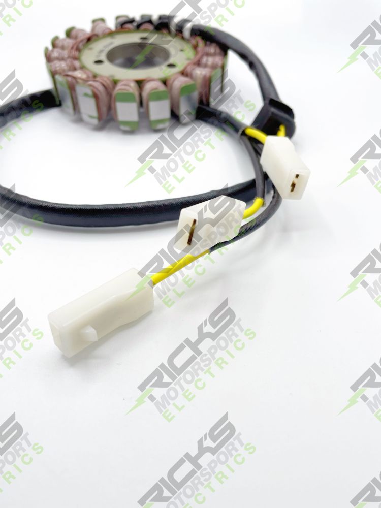 New Suzuki Charging Kit, this aftermarket charging kit from Rick's Motorsport Electrics will replace BOTH the stator and rec/reg from 2006-07 GSXR600 and GSXR750. Rick's kit is designed to help eliminate the over-heating issues on these machines by rerouting wires, and still maintaining ease of installation. Also comes with the stator cover gasket.. This kit is not for use with standard lead acid batteries. The voltage set point on the rec/reg is 14V +/- .2. Please contact the manufacturer of your Lithium Ion Battery to ensure our product has the correct set point for their product. ***Rick's Motorsport Electrics One Year Product Warranty is for the Stator & Rec-Reg only. Rick's warranty does not cover batteries of any type.