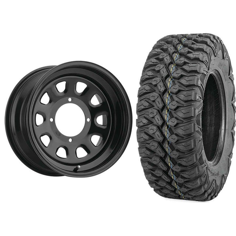 Mounted Wheel and Tire Kit Wheel: 12x7 4+3 4/110 Tire: 25x8-12 8 Ply