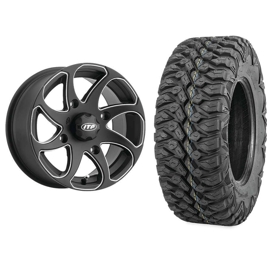 Set of 2 Mounted Wheel and Tire Kit Wheel: 14x7 5+2 4/156 Tire: 28x10-14 8 Ply